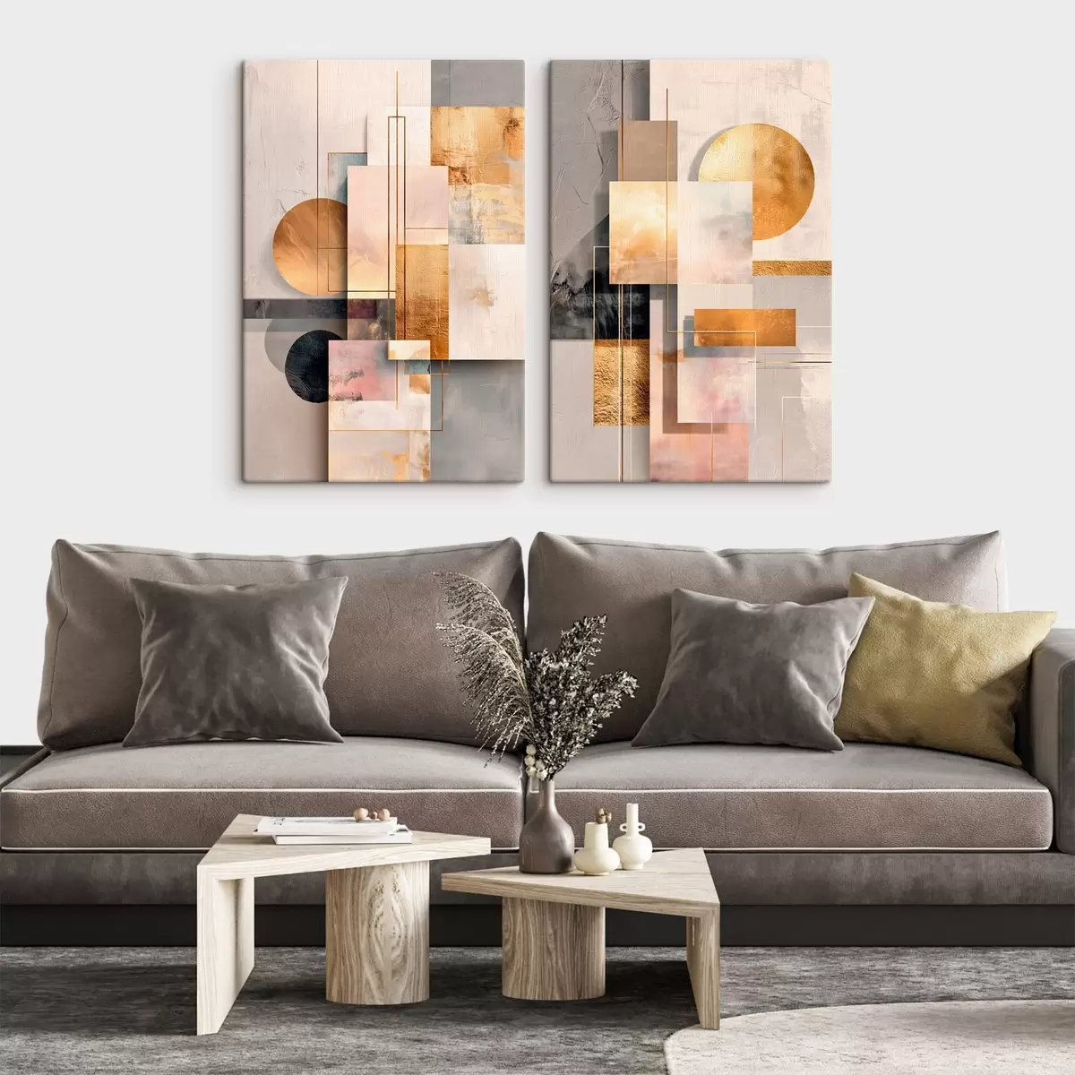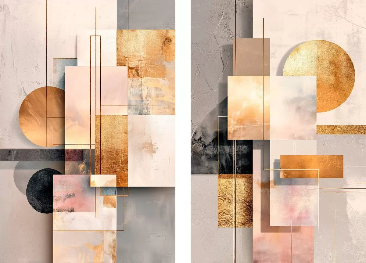 Obraz Geometrická abstrakce s měděnými a béžovými akcenty v moderním grafickém stylu Č. m30138