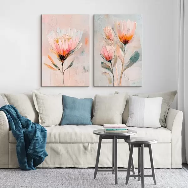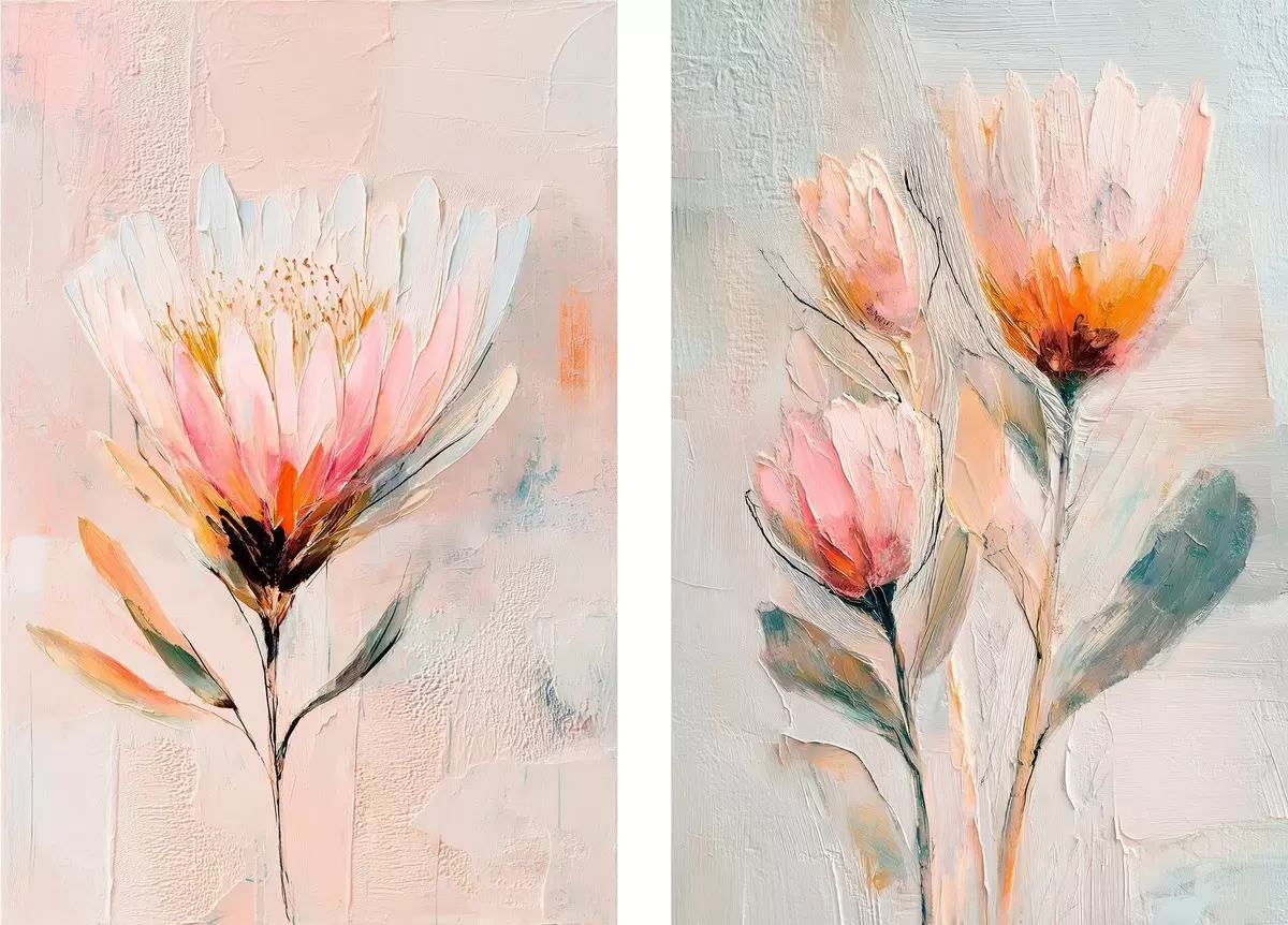 Obraz Květinová kompozice v pastelových tónech s plastickými tahy štětcem ve stylu současného umění Č. m30140