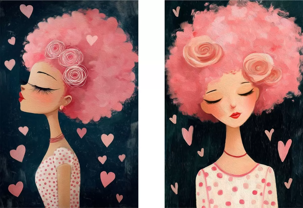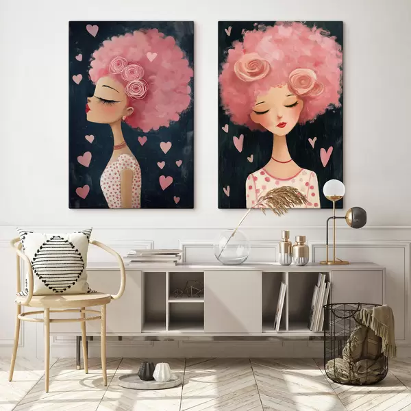Obraz Dívka s růžovými vlasy a srdíčky Č. m30156