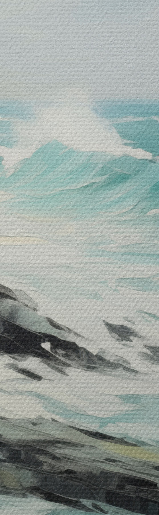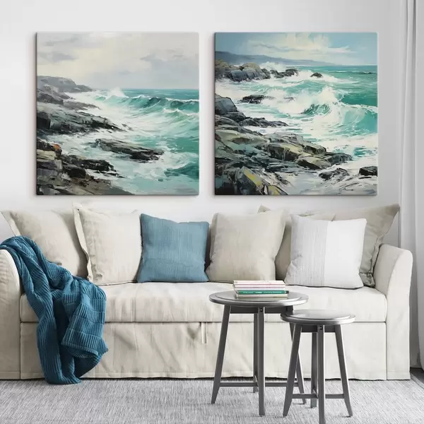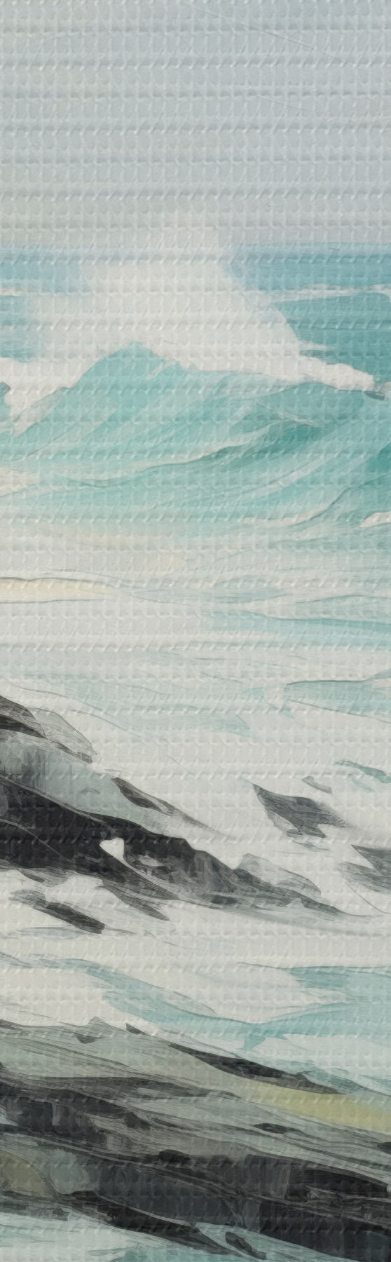 Obraz Krajina skalnatého pobřeží s vlnami pod zamračenou oblohou, malířský styl Č. m30198