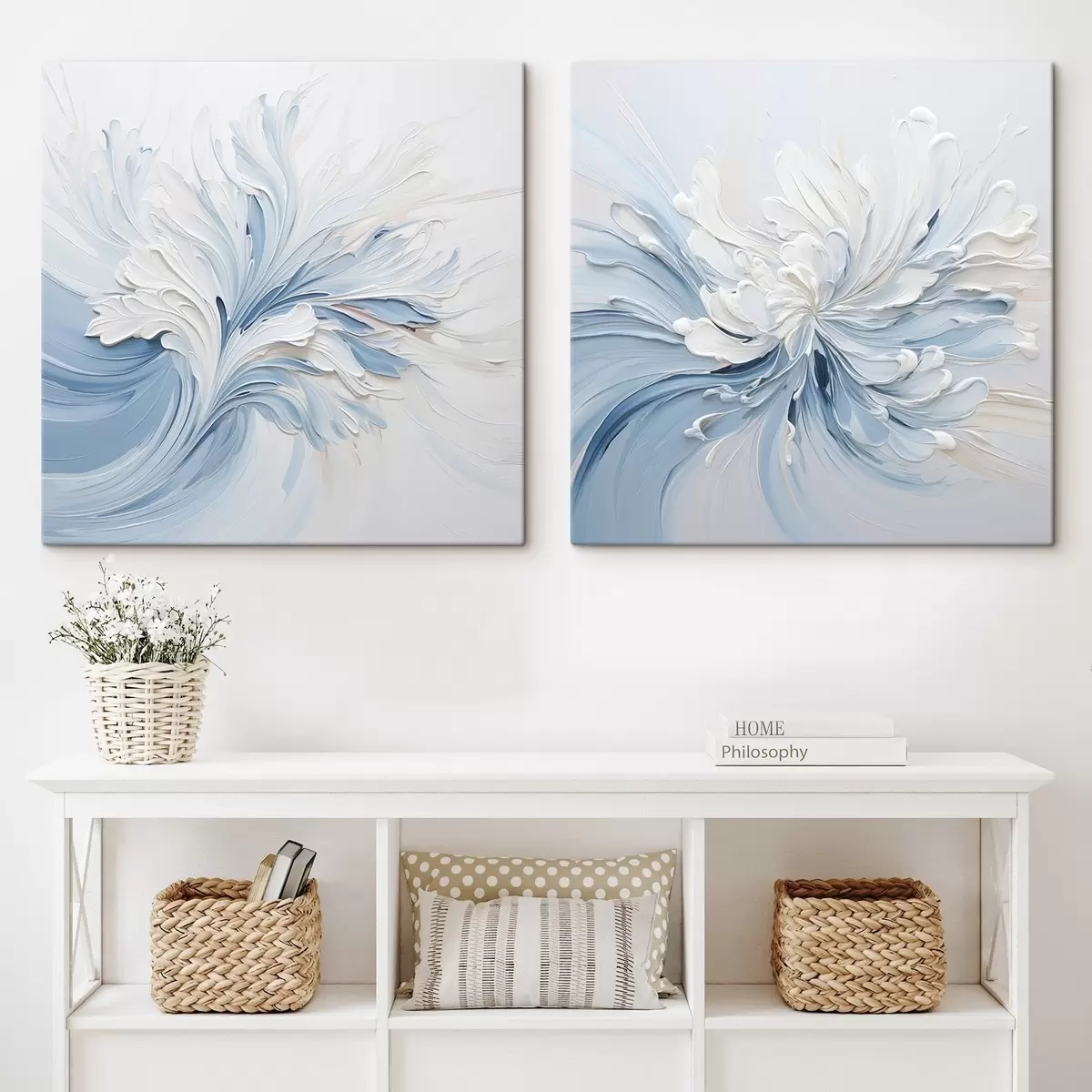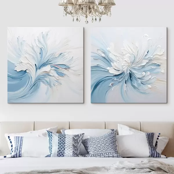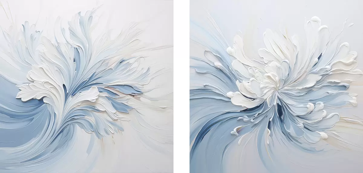 Obraz Bílo-světle modrý abstraktní květinový vzor s plastickými okvětními lístky a vlnícími se liniemi Č. m30202