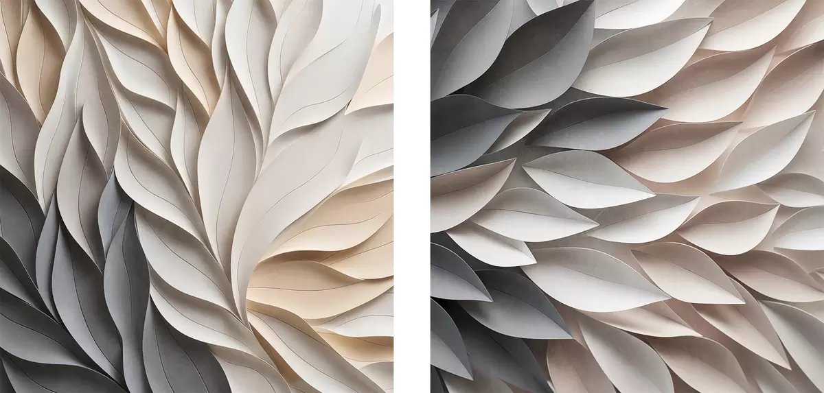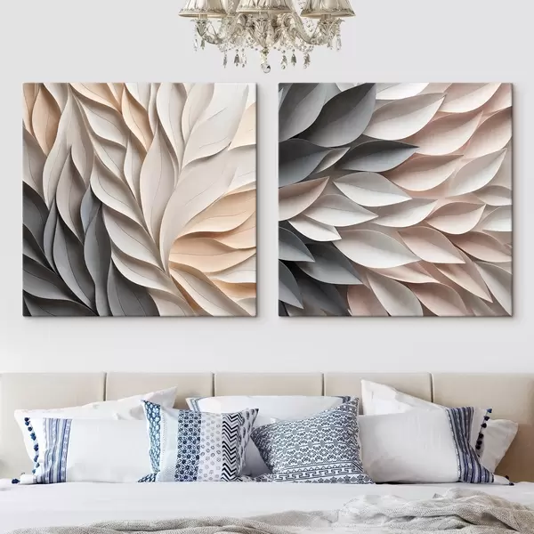 Obraz Texturovaný vzor s překrývajícími se abstraktními listovými tvary v neutrálních odstínech béžové, krémové a šedé Č. m30208