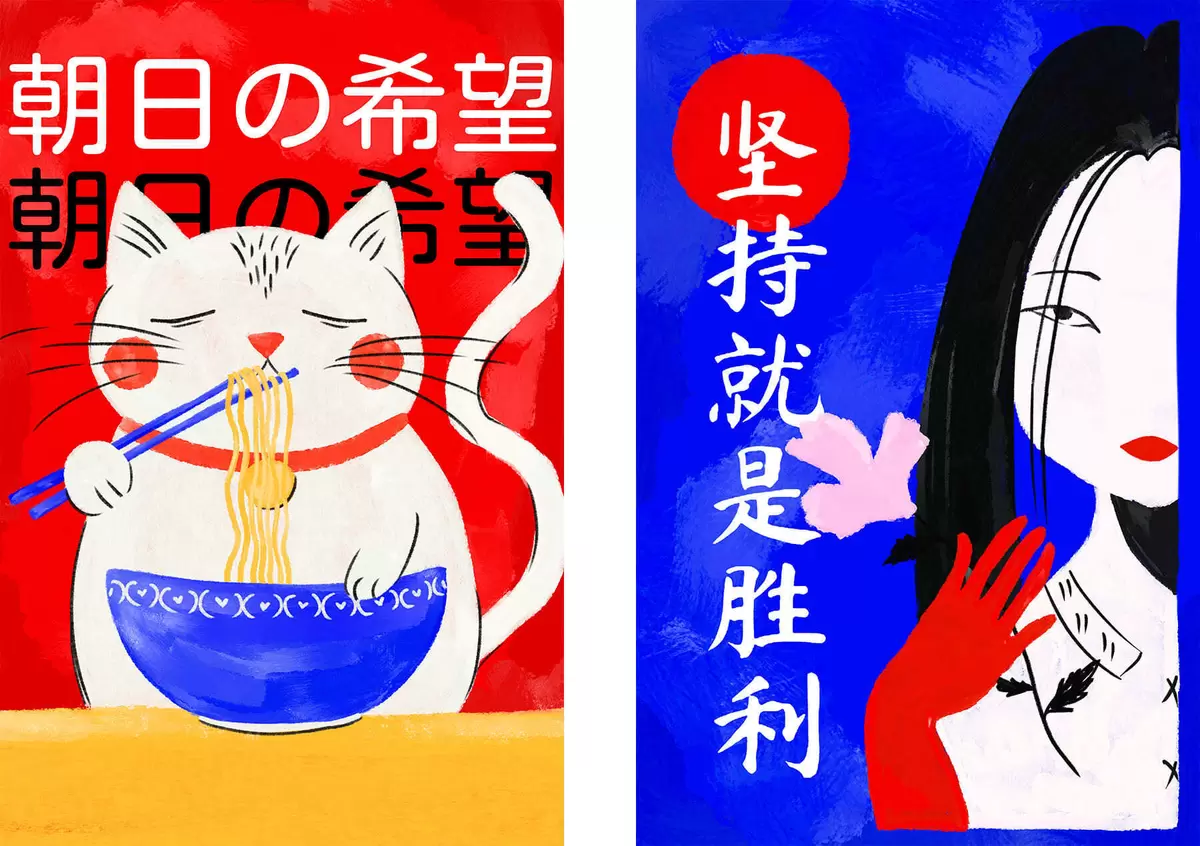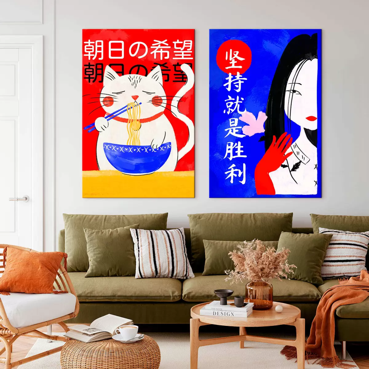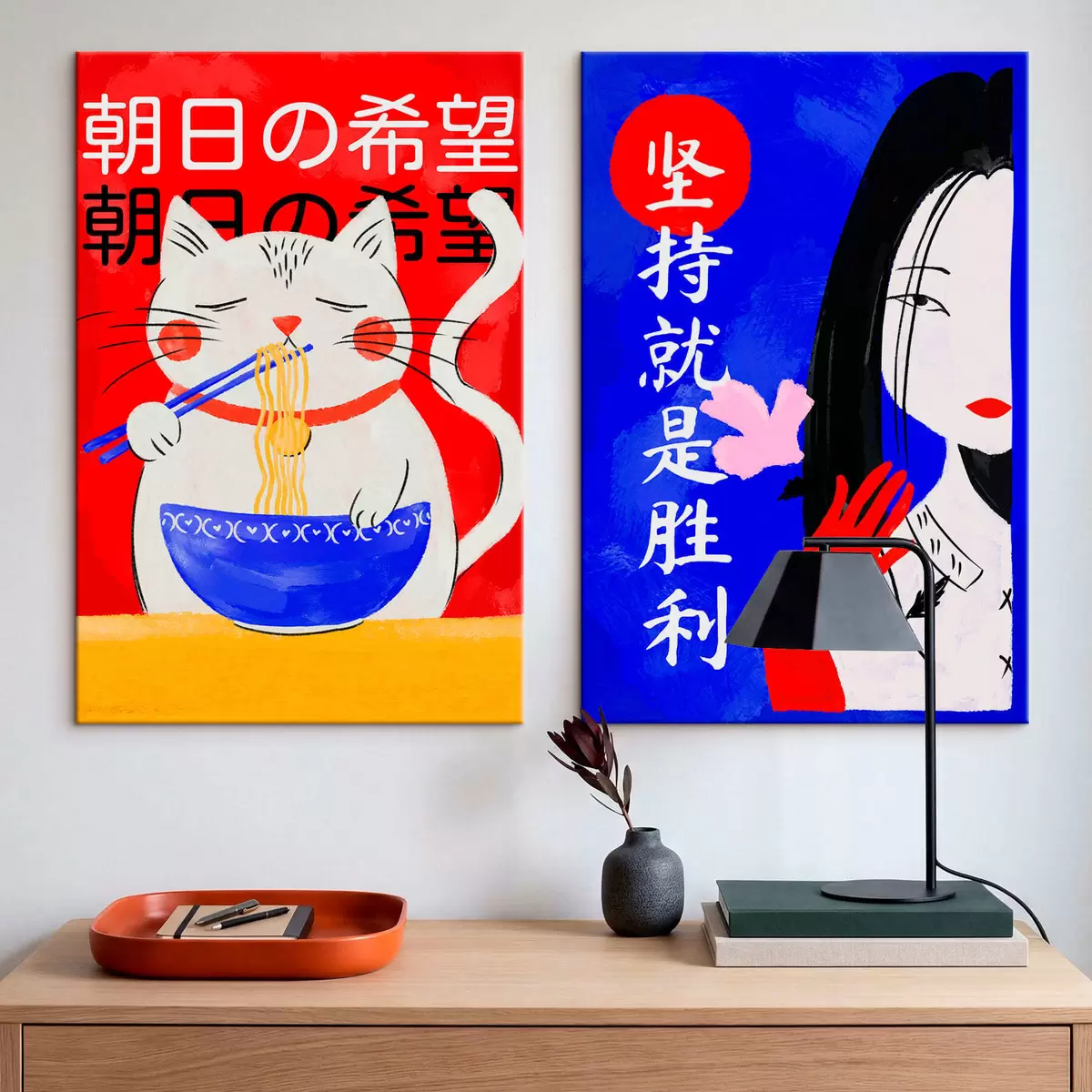 Obraz Dvojdílný obraz s portrétem kočky a ženy v výrazném stylu Č. m30233