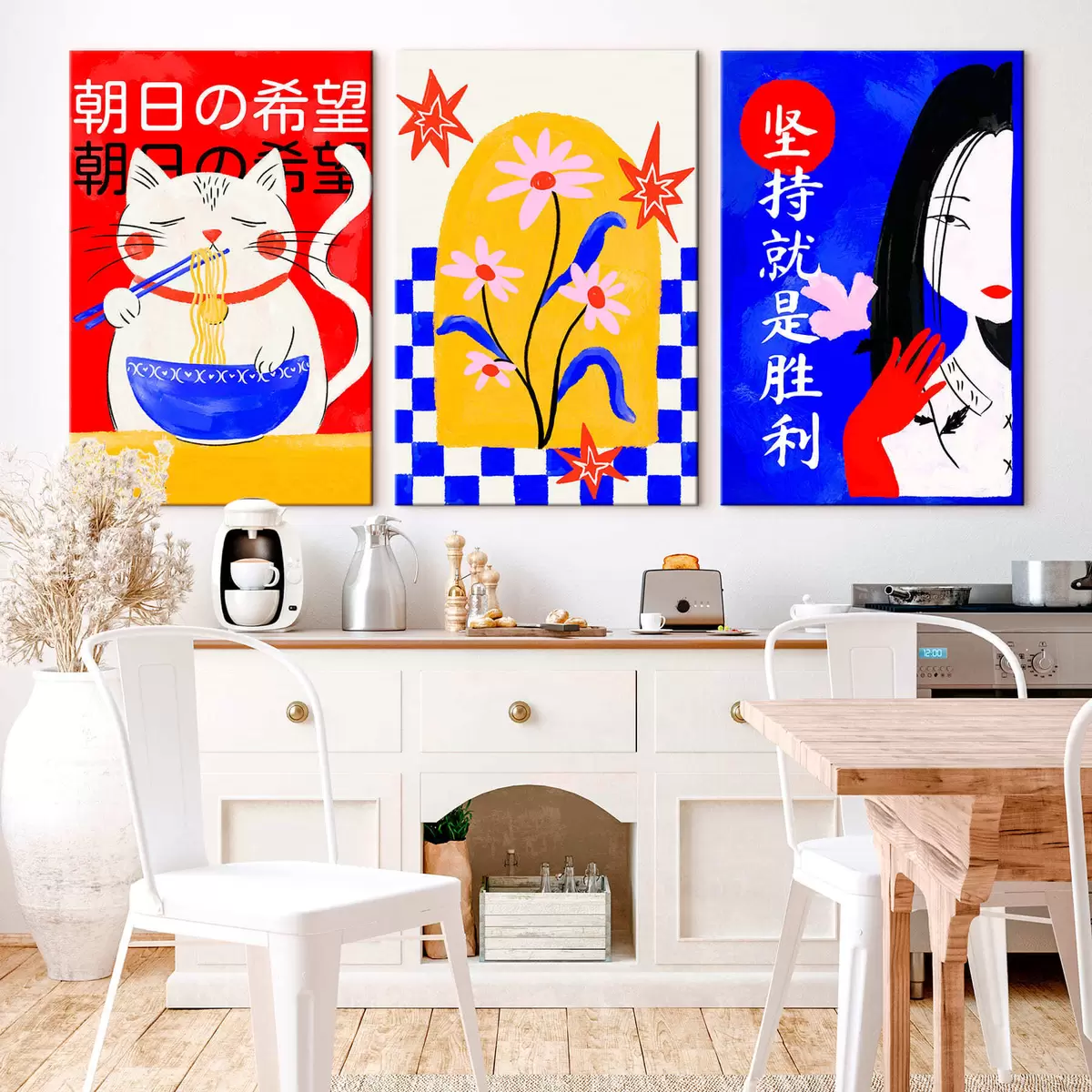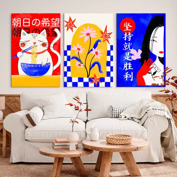 Obraz Triptych s kočkou, rybou a portrétem ženy Č. m30240