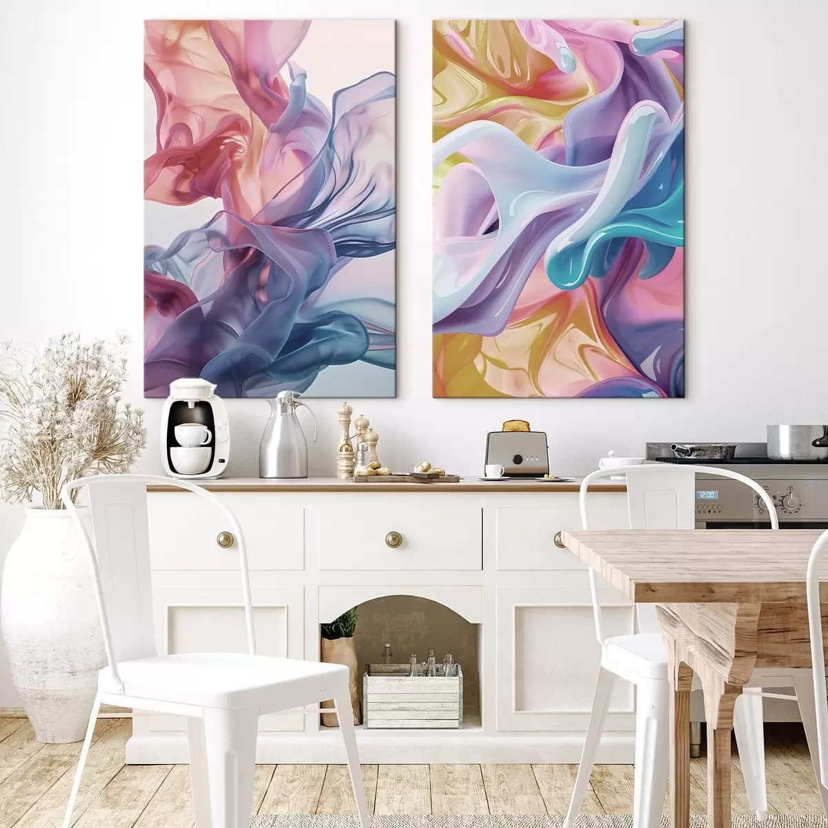 K objednání jsou k dispozici tři typy materiálu: Economic Canvas - hustý a odolný materiál pro digitální tisk, identický s malířským plátnem, voděodolný povrch, realistická reprodukce detailů, středně zrnitý materiál. Prémiové plátno - struktura připomíná malířské plátno (proplétané drobné nitě). Měkká, detailní reprodukce obrazu na matném povrchu. Eco-Premium - vysoce kvalitní tkanina ze 100% bavlny. Díky přírodním bavlněným vláknům je materiál trvanlivý a odolný proti opotřebení. Vynikající reprodukce barev a detailů.