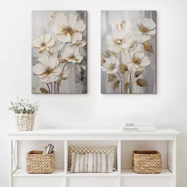 Obraz Bílé květy se žlutými akcenty na strukturovaném pozadí Č. m30311