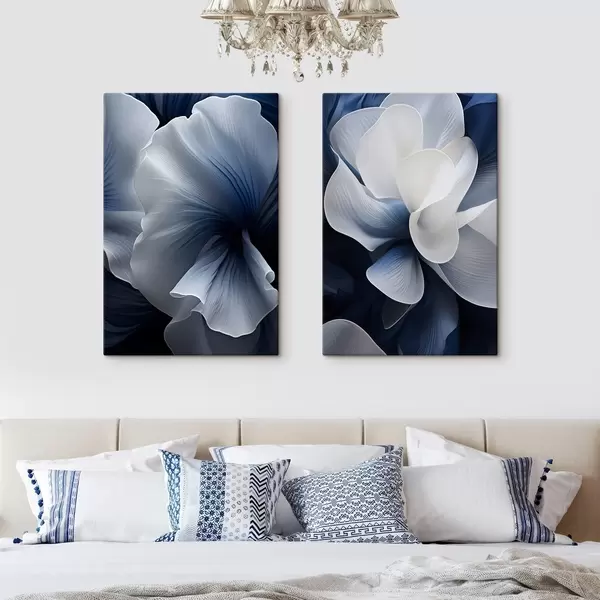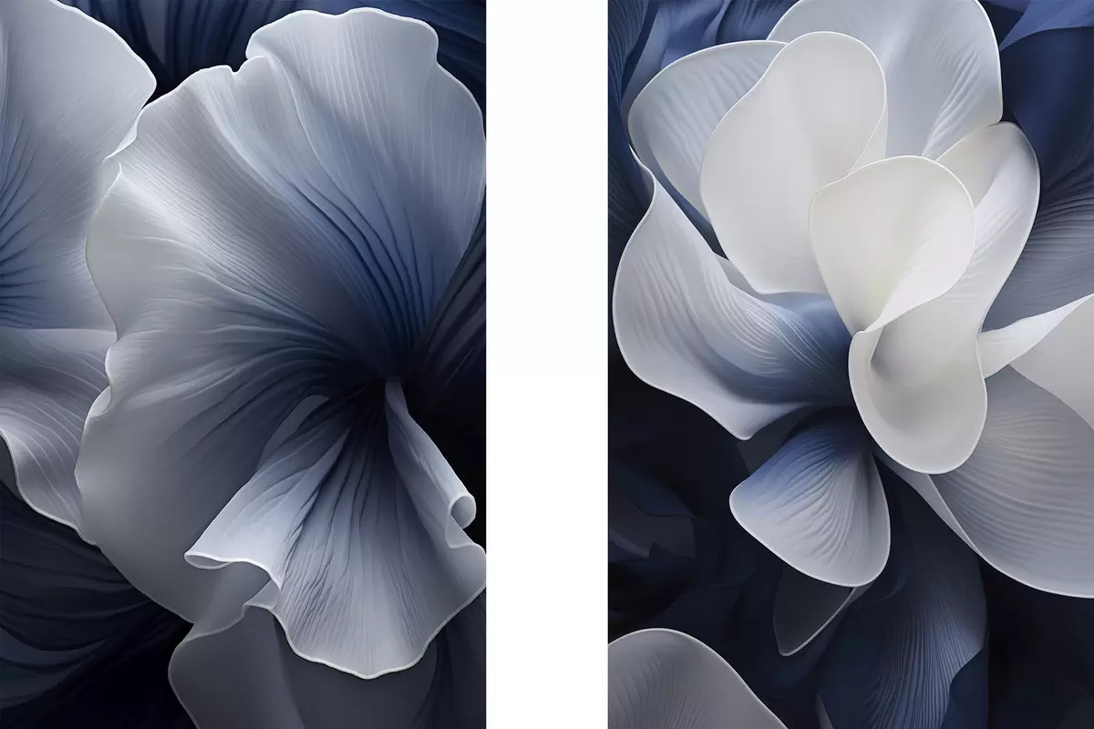 Obraz Abstraktní modrobílé okvětní lístky na tmavém pozadí Č. m30316