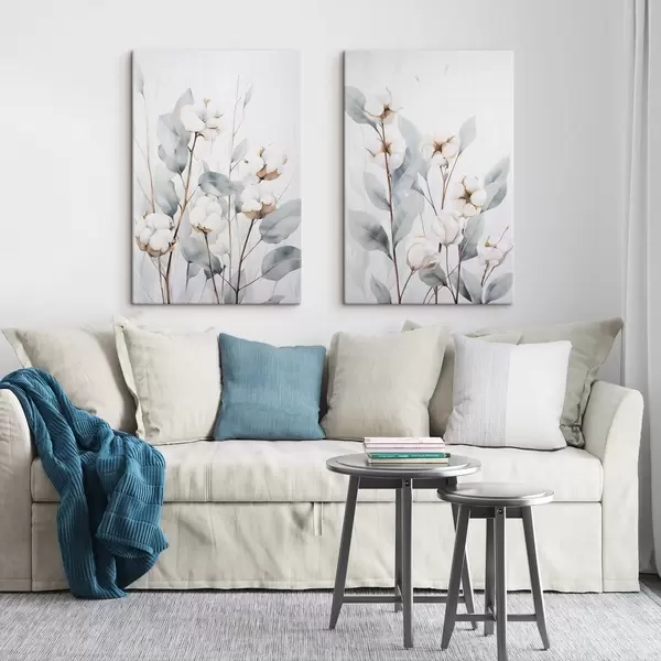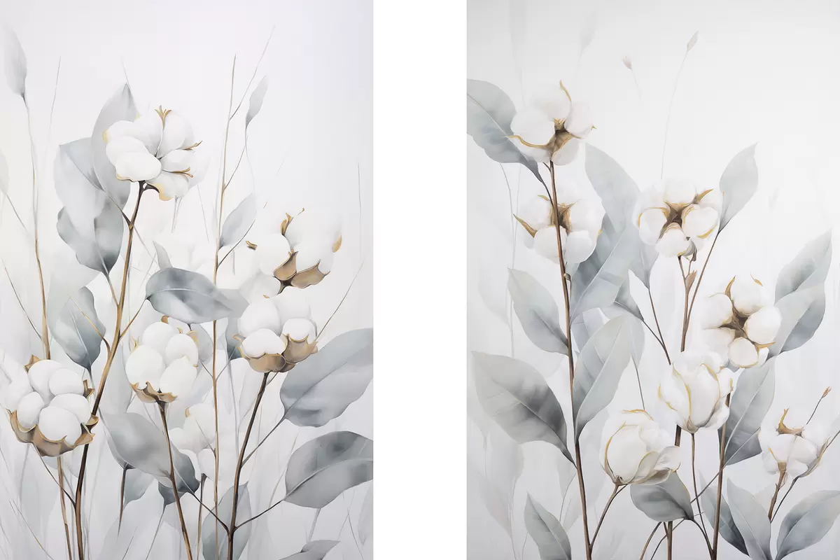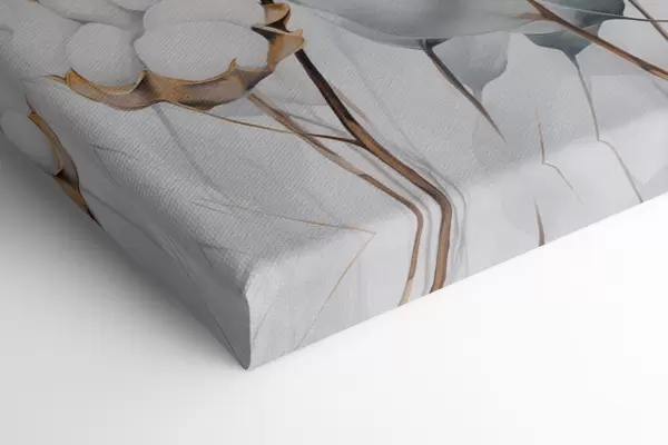 Obraz Bílá bavlníková rostlina s bledě modrozelenými listy na světlém pozadí Č. m30322