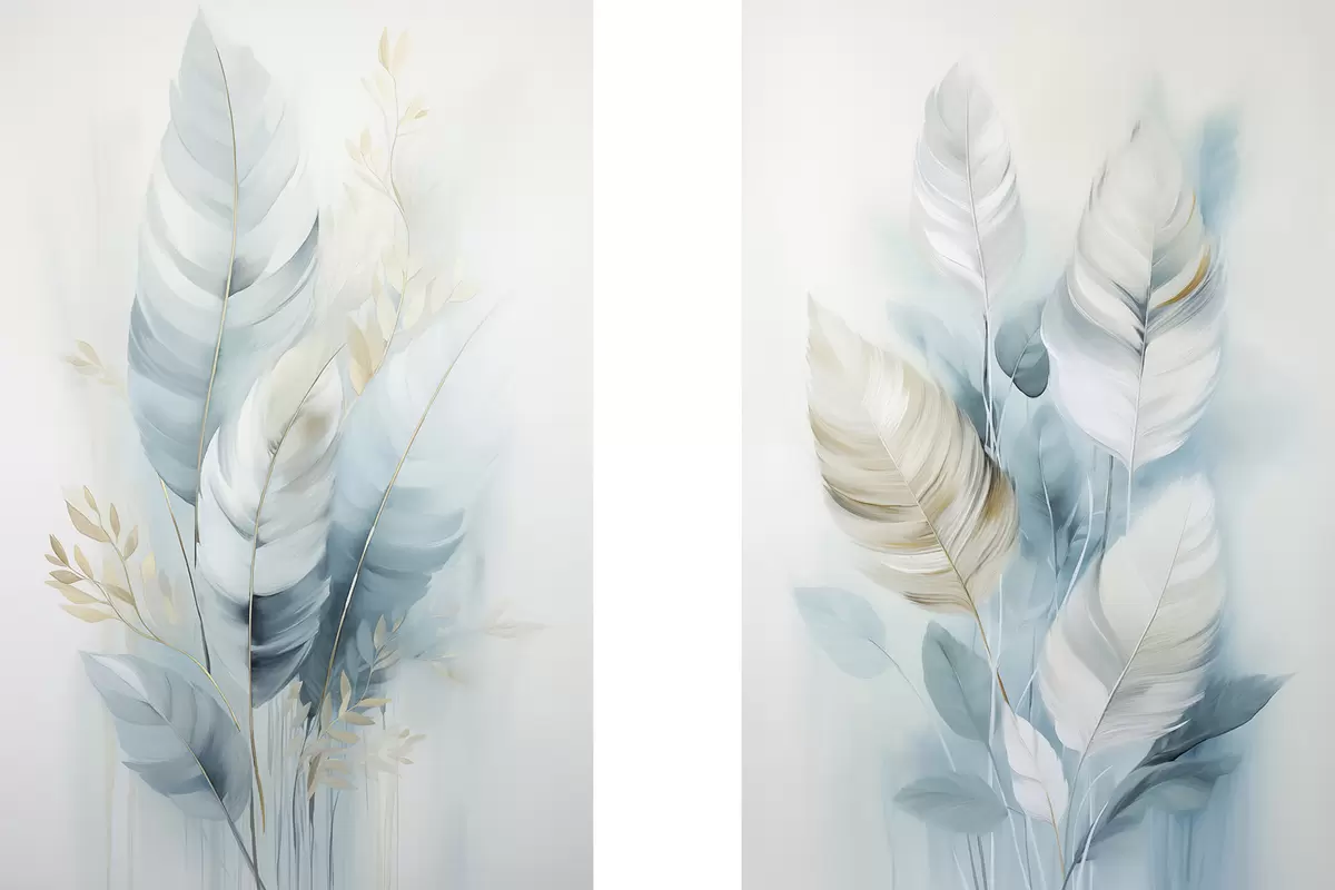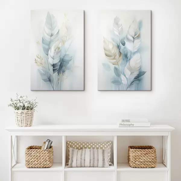 Obraz Velká, měkká peříčka v odstínech modré a bílé s jemnými béžovými lístky Č. m30325