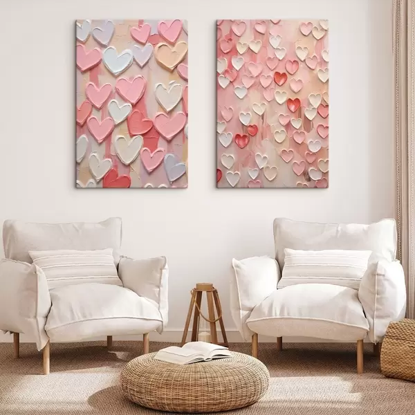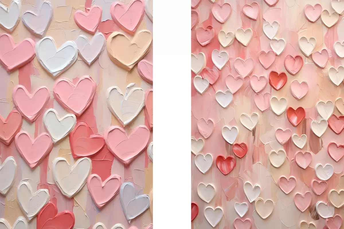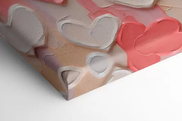 Obraz Srdíčka v různých odstínech broskvové a růžové barvy v texturovaném, malovaném stylu Č. m30326
