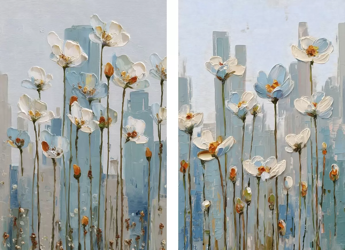 Obraz květiny na pozadí města, ve stylu olejomalby Č. m30333