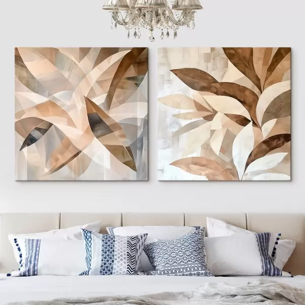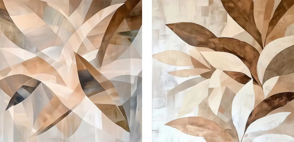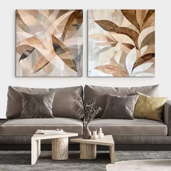 Obraz Stylizovaná zeleň v teplých pískových odstínech v moderním stylu interiérové ilustrace Č. m30350