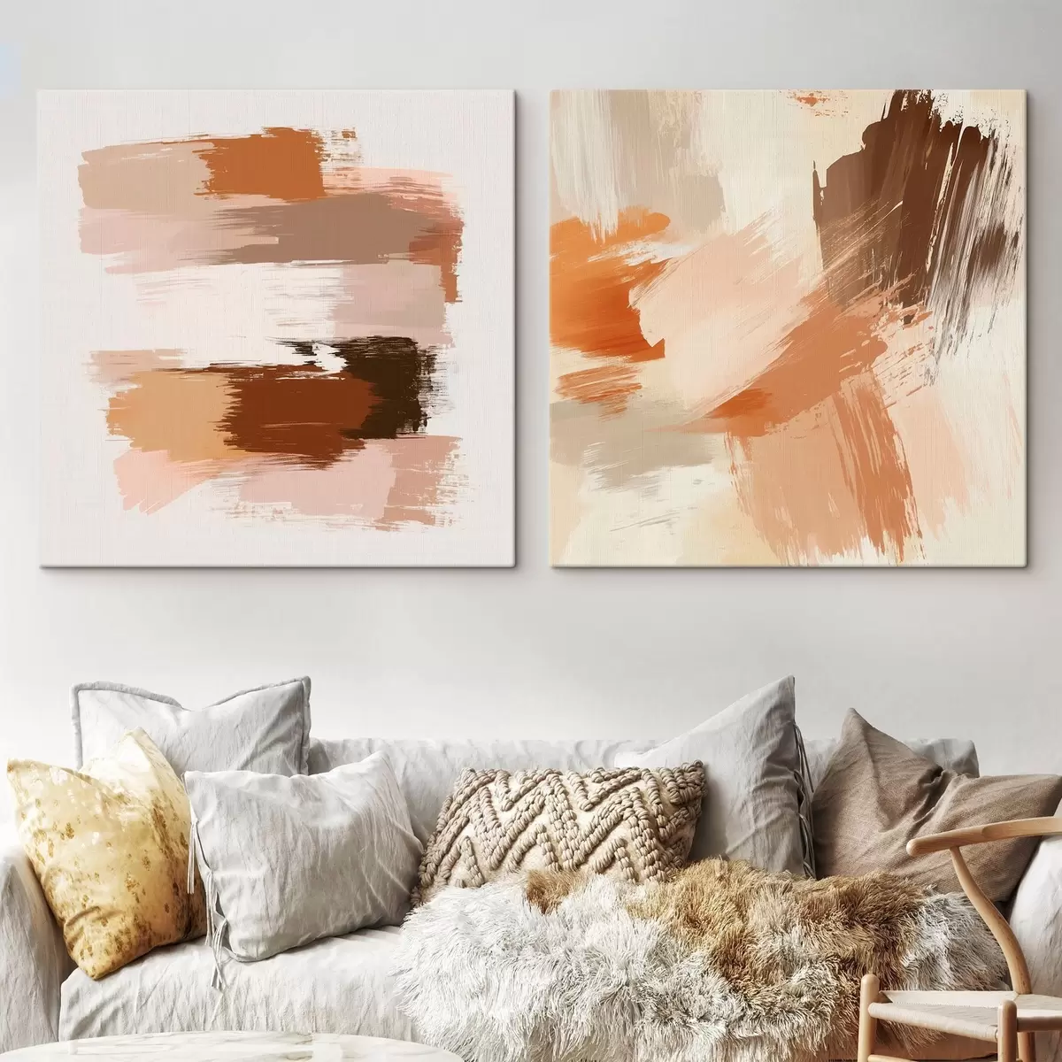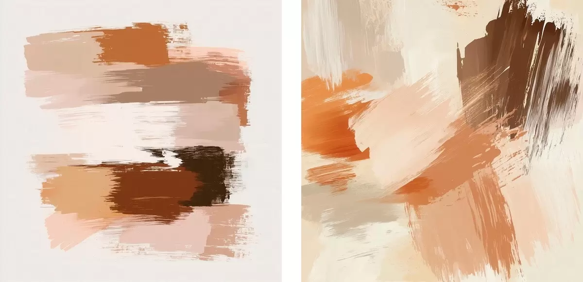 Obraz Dekorativní umění v teplých hnědo-béžových tónech s efektem malířského tahu štětcem Č. m30355