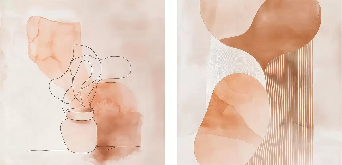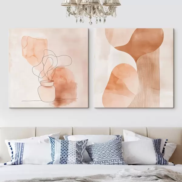 Obraz Abstraktní tvary v béžovo-broskvové barevné škále s lineárními prvky v minimalistickém stylu Č. m30361