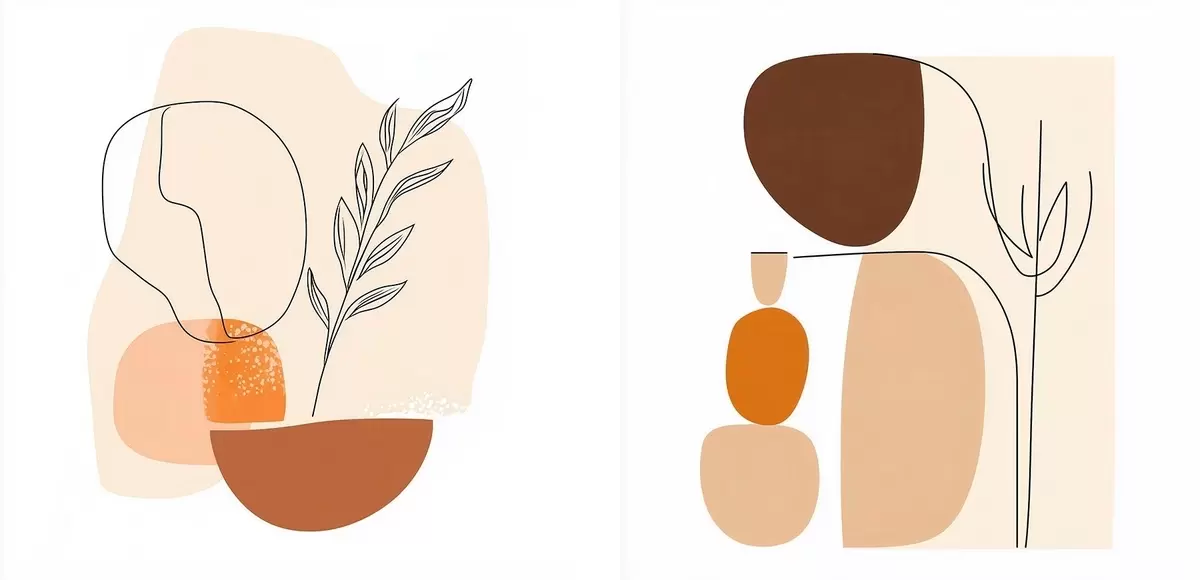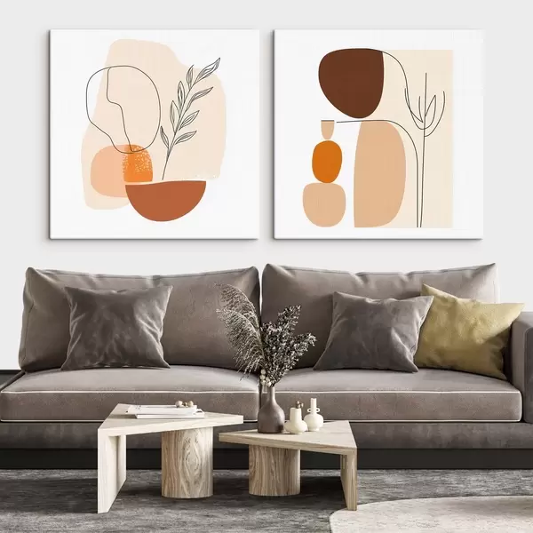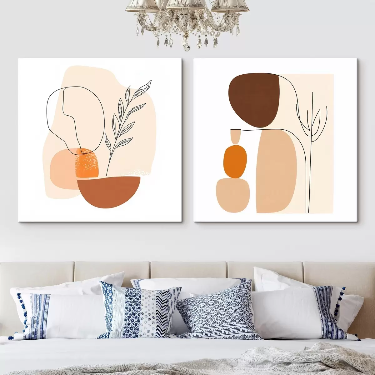 Obraz Abstraktní květiny v teplé béžovo-korálové barevné škále: ilustrace v minimalistickém stylu Č. m30362