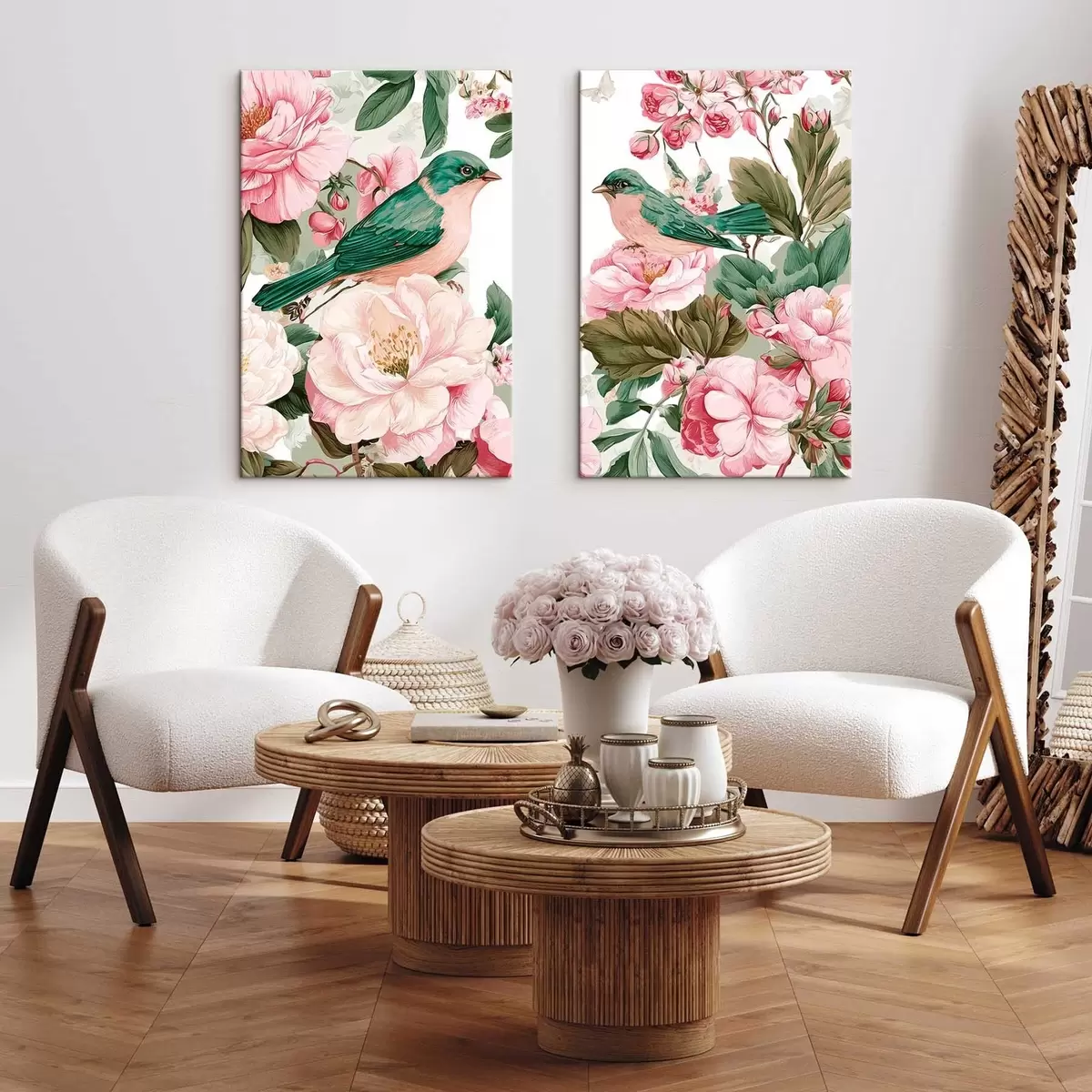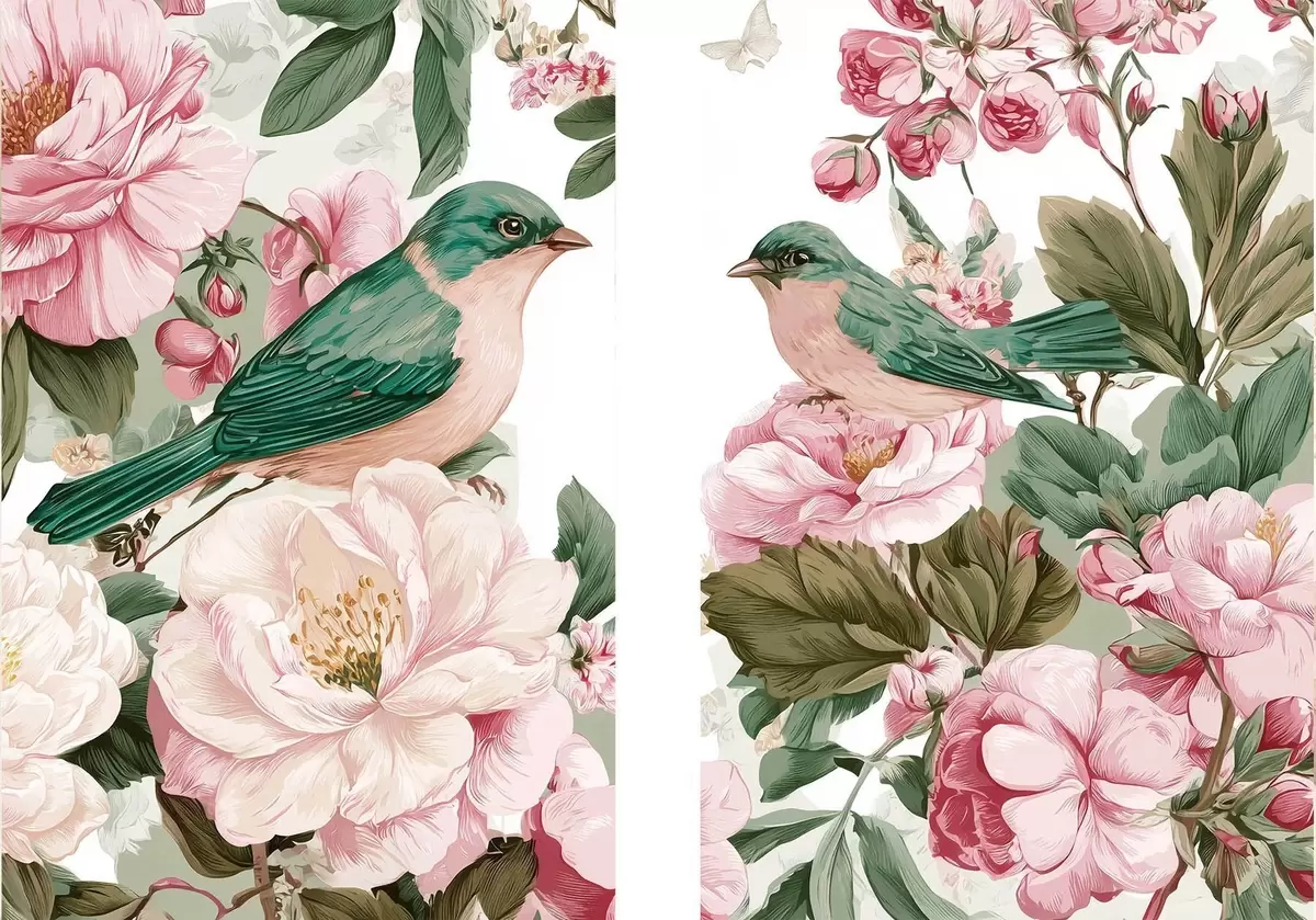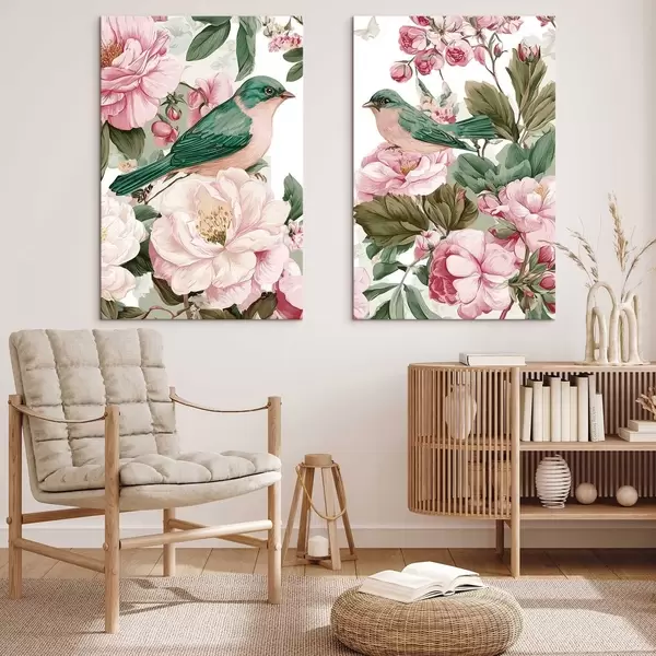 Obraz Ptáci na jemně růžových květech Č. m30386