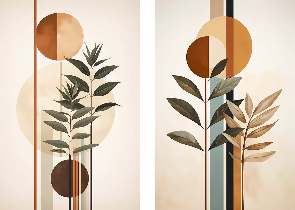 Obraz Abstraktní rostliny s kruhy a čarami Č. m30392
