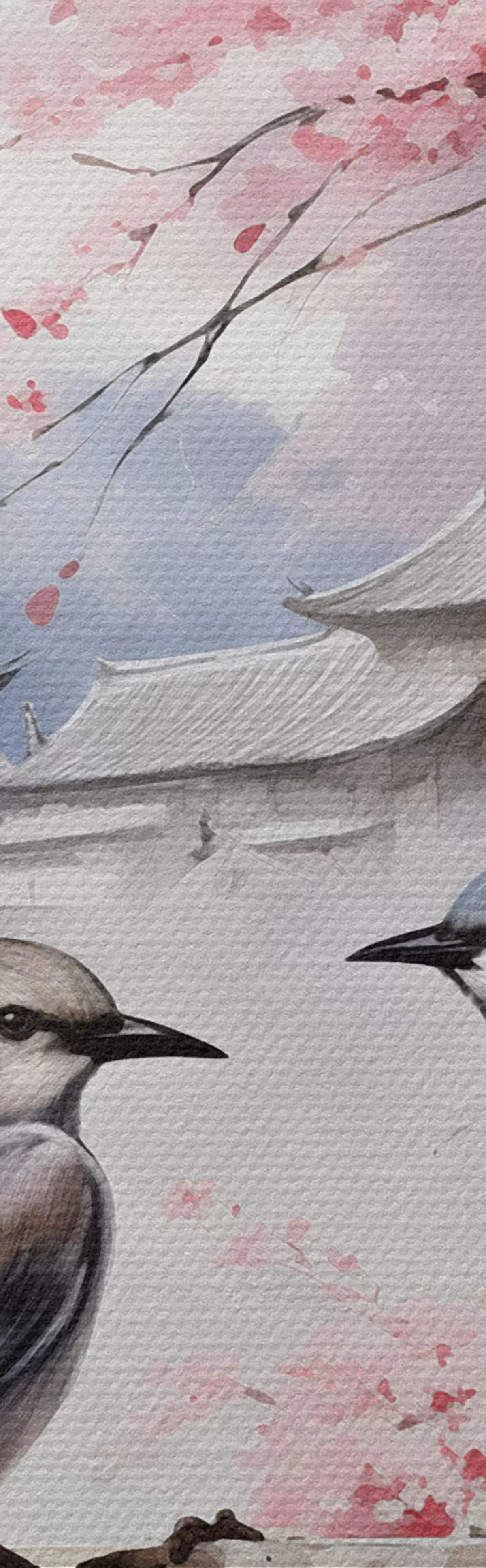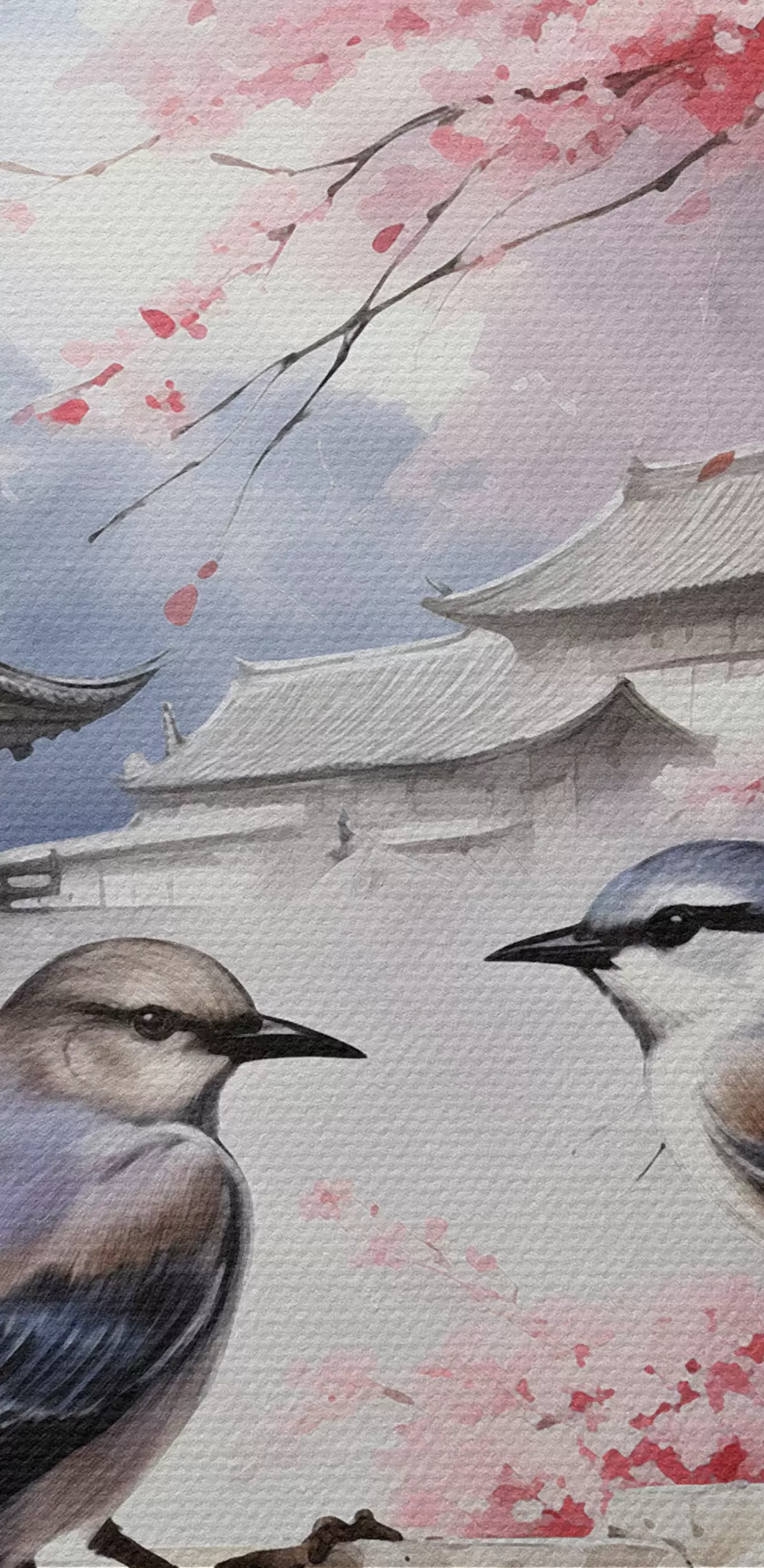 Obraz Dva ptáci na pozadí třešňových květů Č. s36815