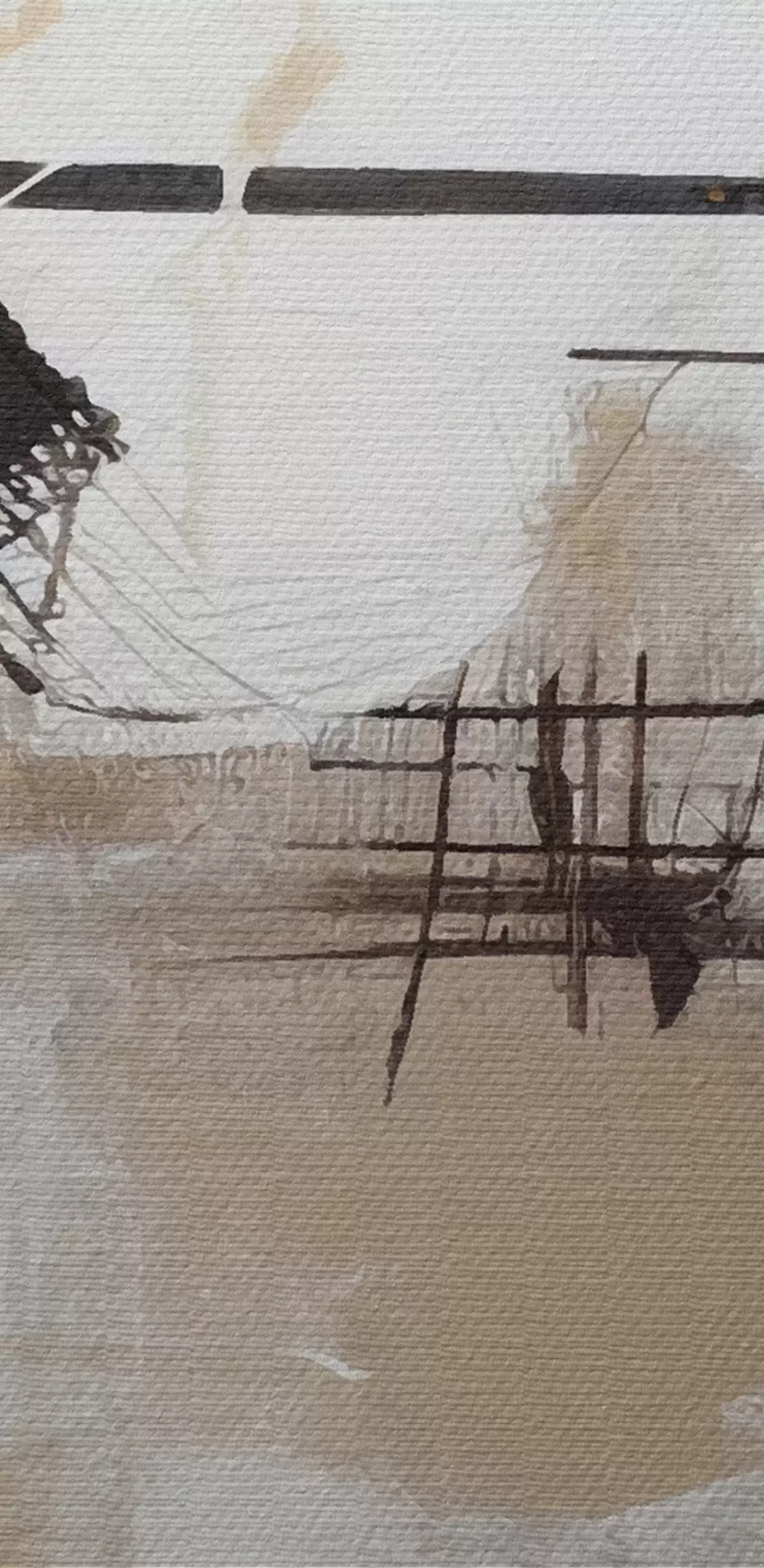 Obraz Abstraktní malba v černých a béžových barvách na bílém pozadí Č. s37067