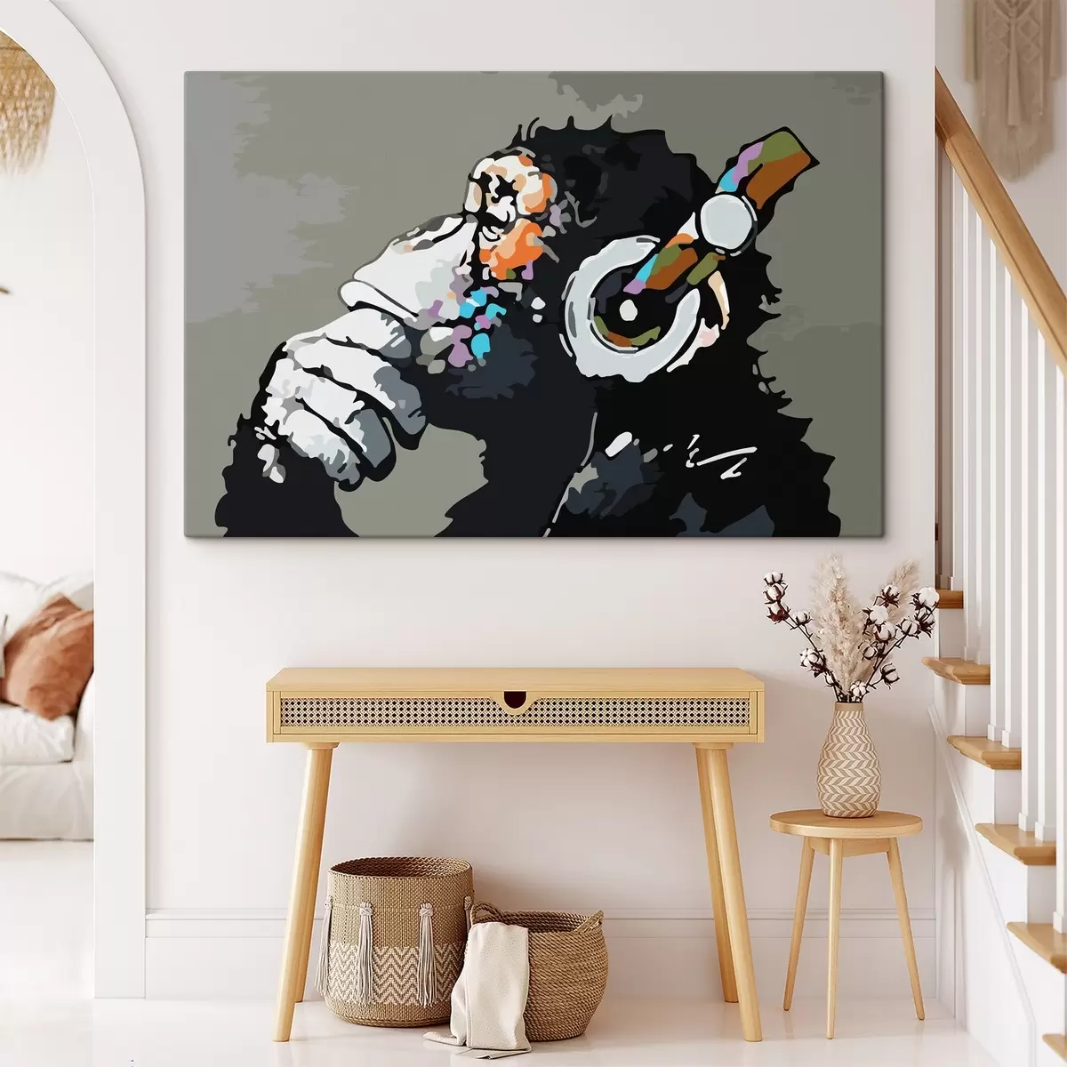 Obraz Opice ve sluchátkách na šedém pozadí Č. s37269