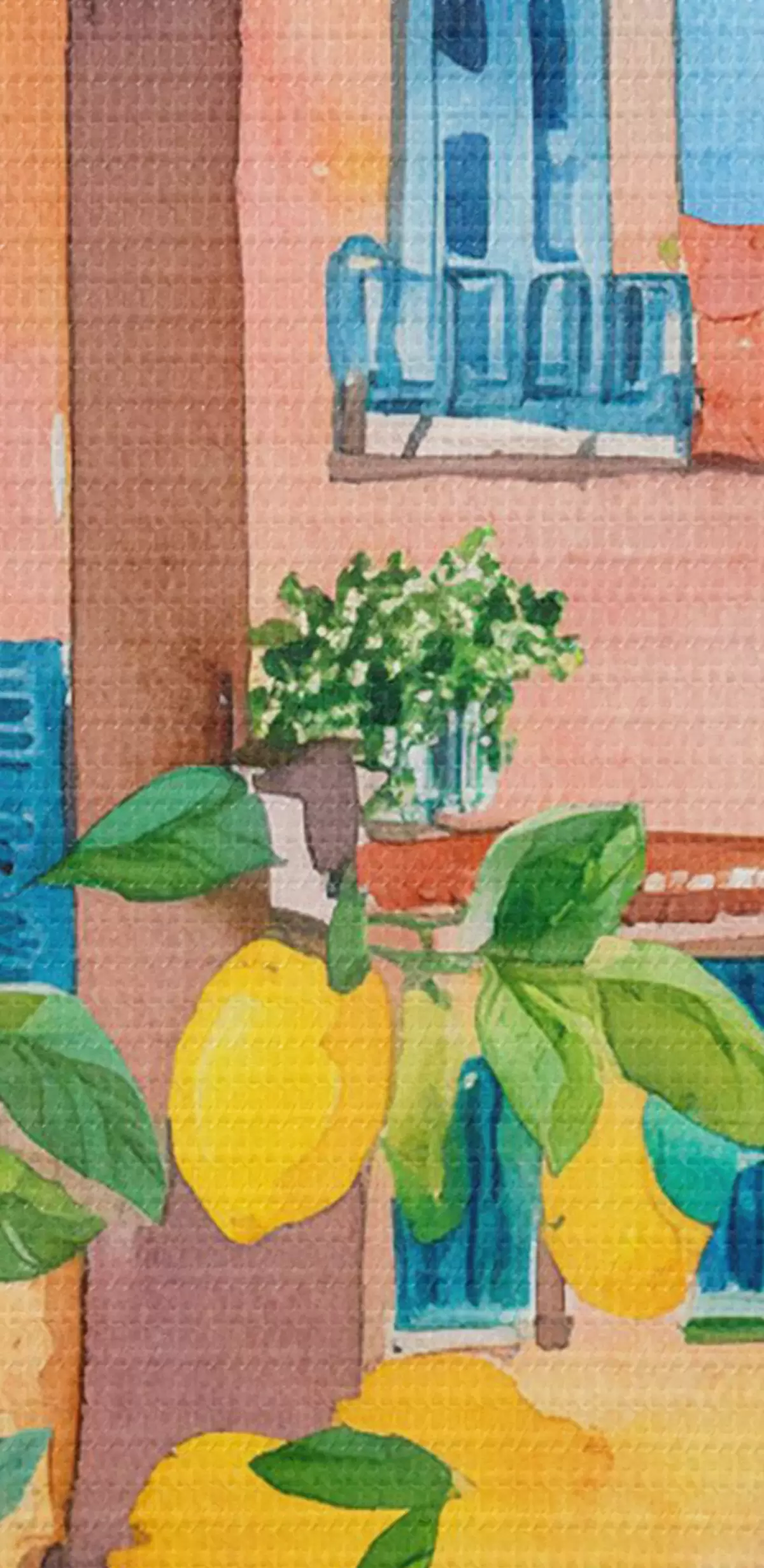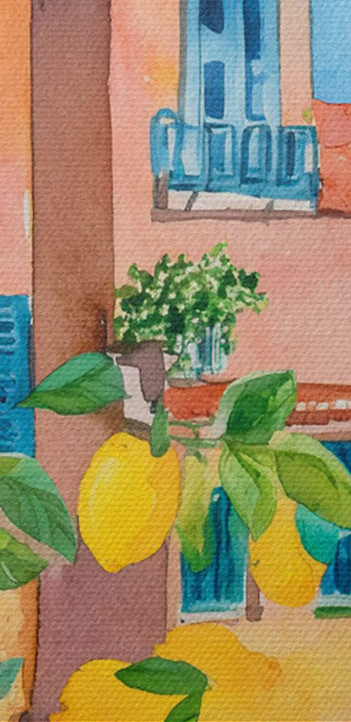 Obraz Italská městská architektura, mořské pobřeží, léto, akvarel, citroník Č. s38395