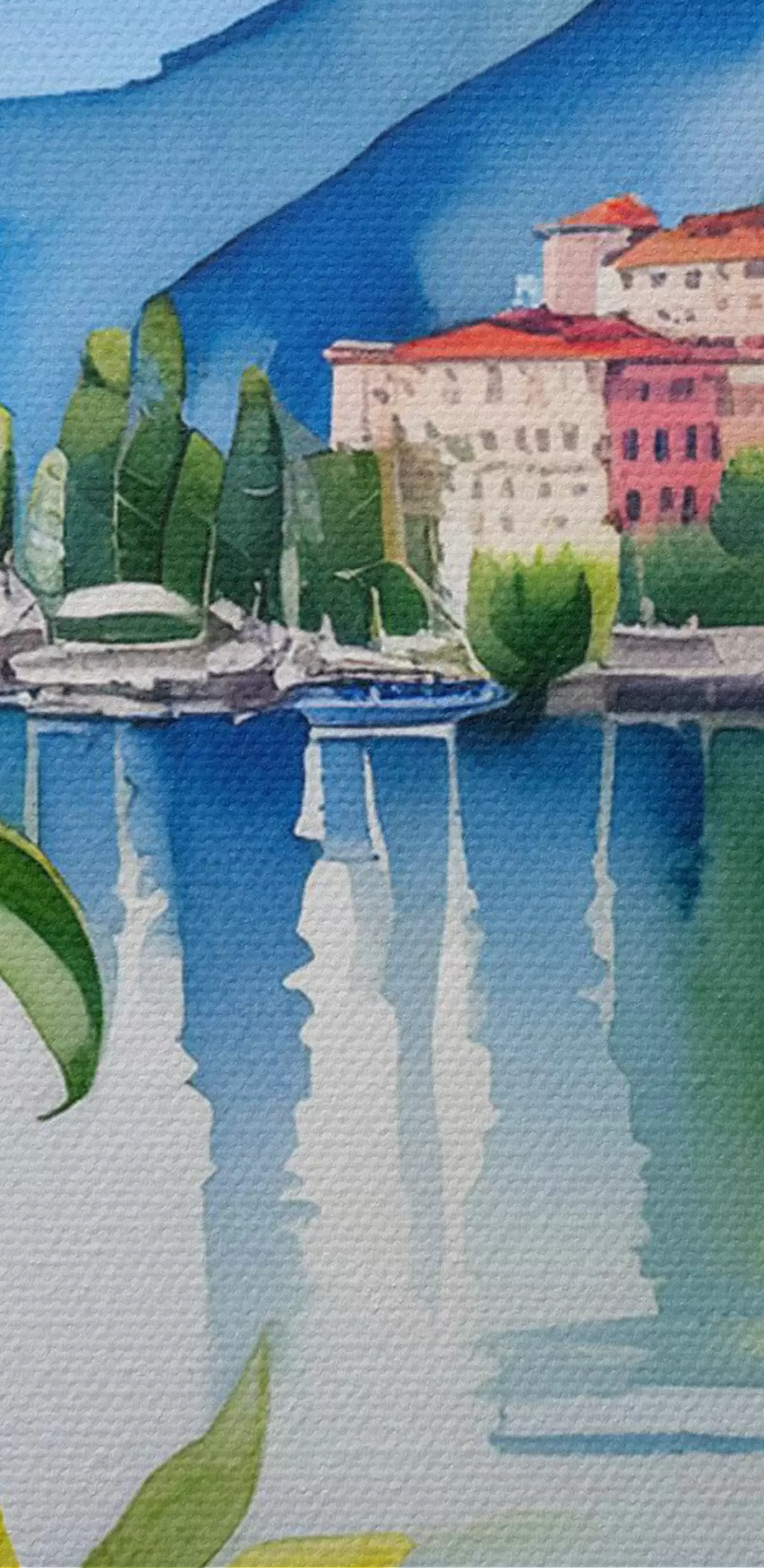 Obraz Jezero Como, akvarel, Itálie, léto, hory, citronovník, moře, staré město Č. s38398