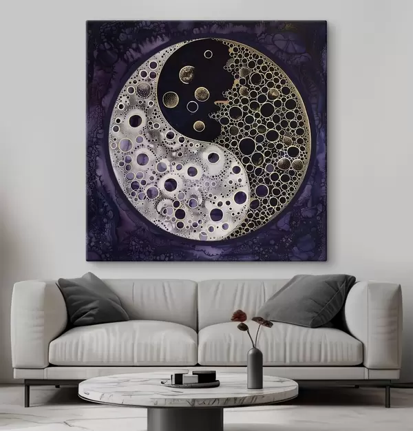 Obraz Symbol jin a jang na fialovém pozadí Č. s38535