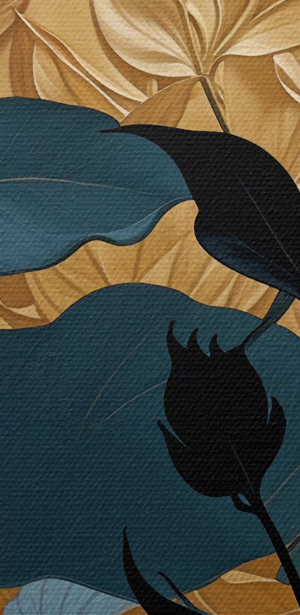 Obraz Abstraktní květinová kompozice s velkými listy a tmavými tvary Č. s38822