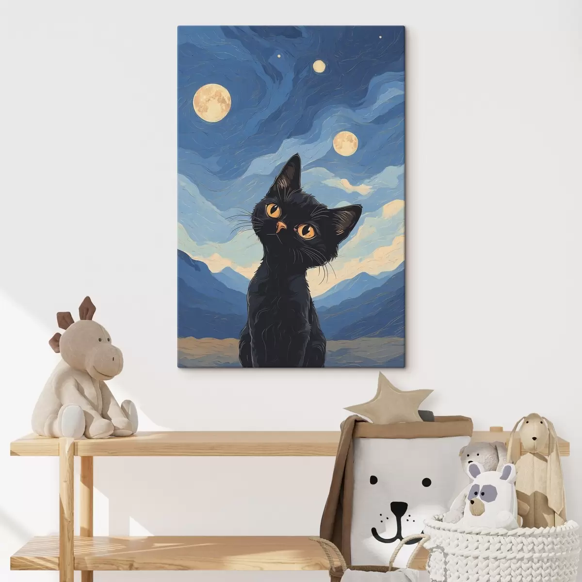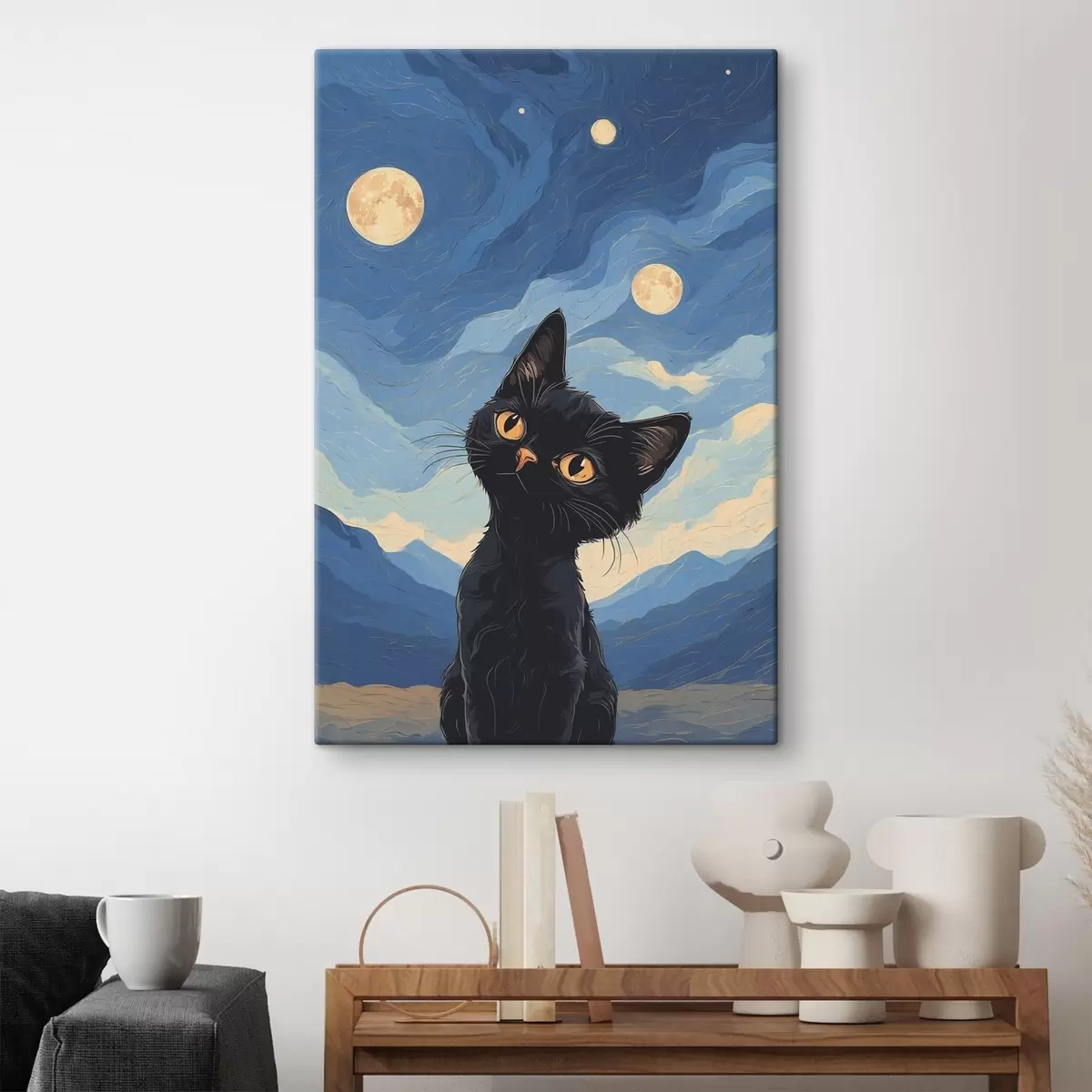 Obraz Zvědavá kočka pod hvězdnou oblohou Č. s38860