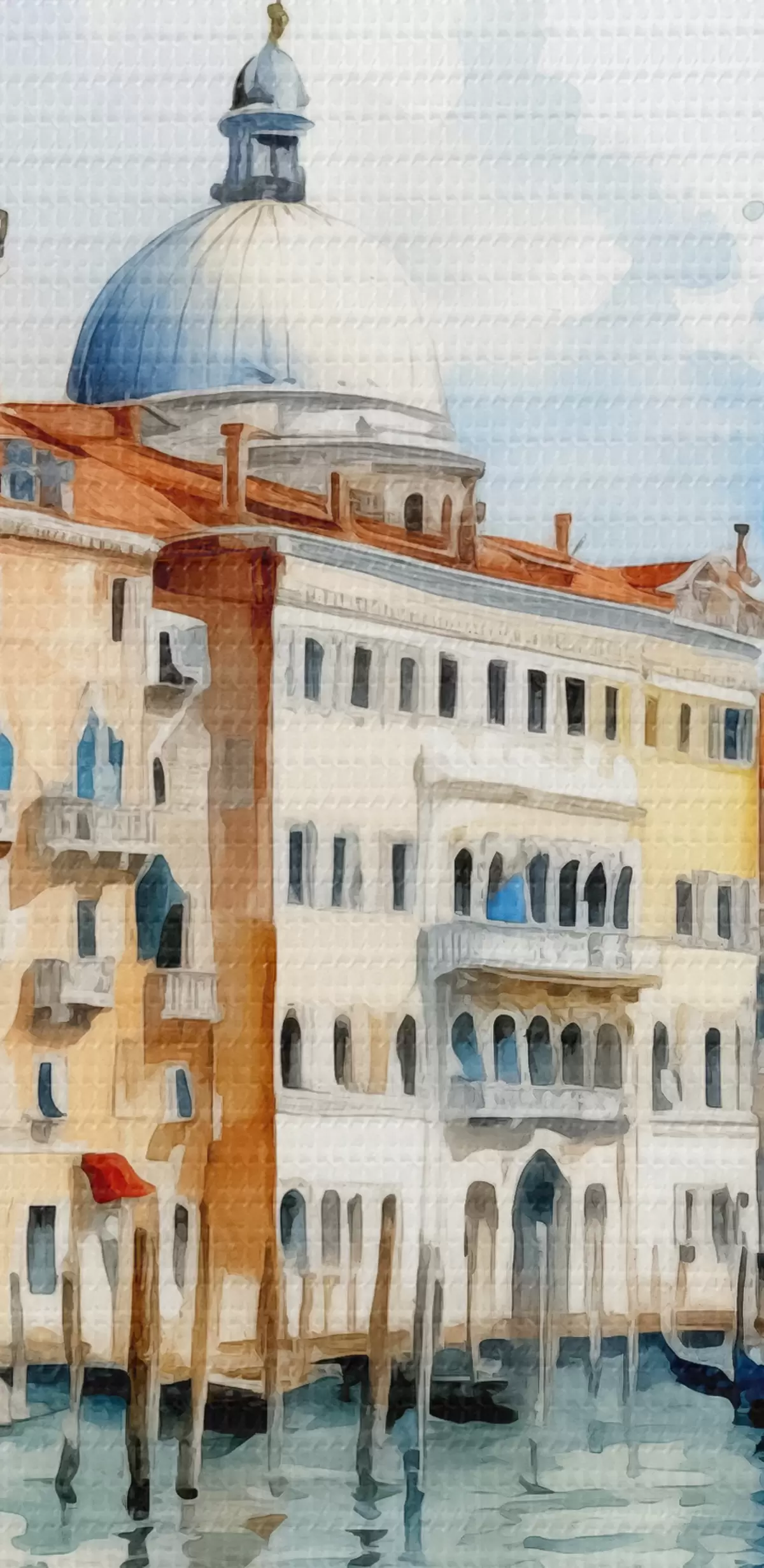 Obraz Akvarel krajina Benátky, záliv, řeka, architektura, krajina, lodě, gondola Č. s38908