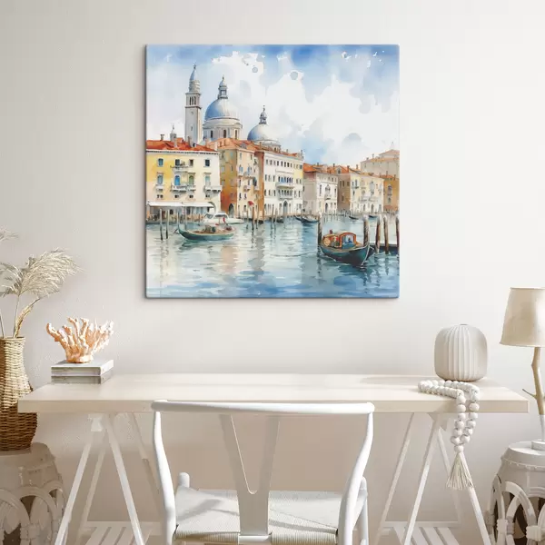 Obraz Akvarel krajina Benátky, záliv, řeka, architektura, krajina, lodě, gondola Č. s38908