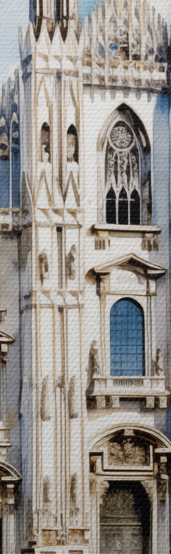 Obraz Katedrála Duomo v Miláně, architektura, město, déšť, akvarel, modrá, šedá, lidé, kteří jdou Č. s38938