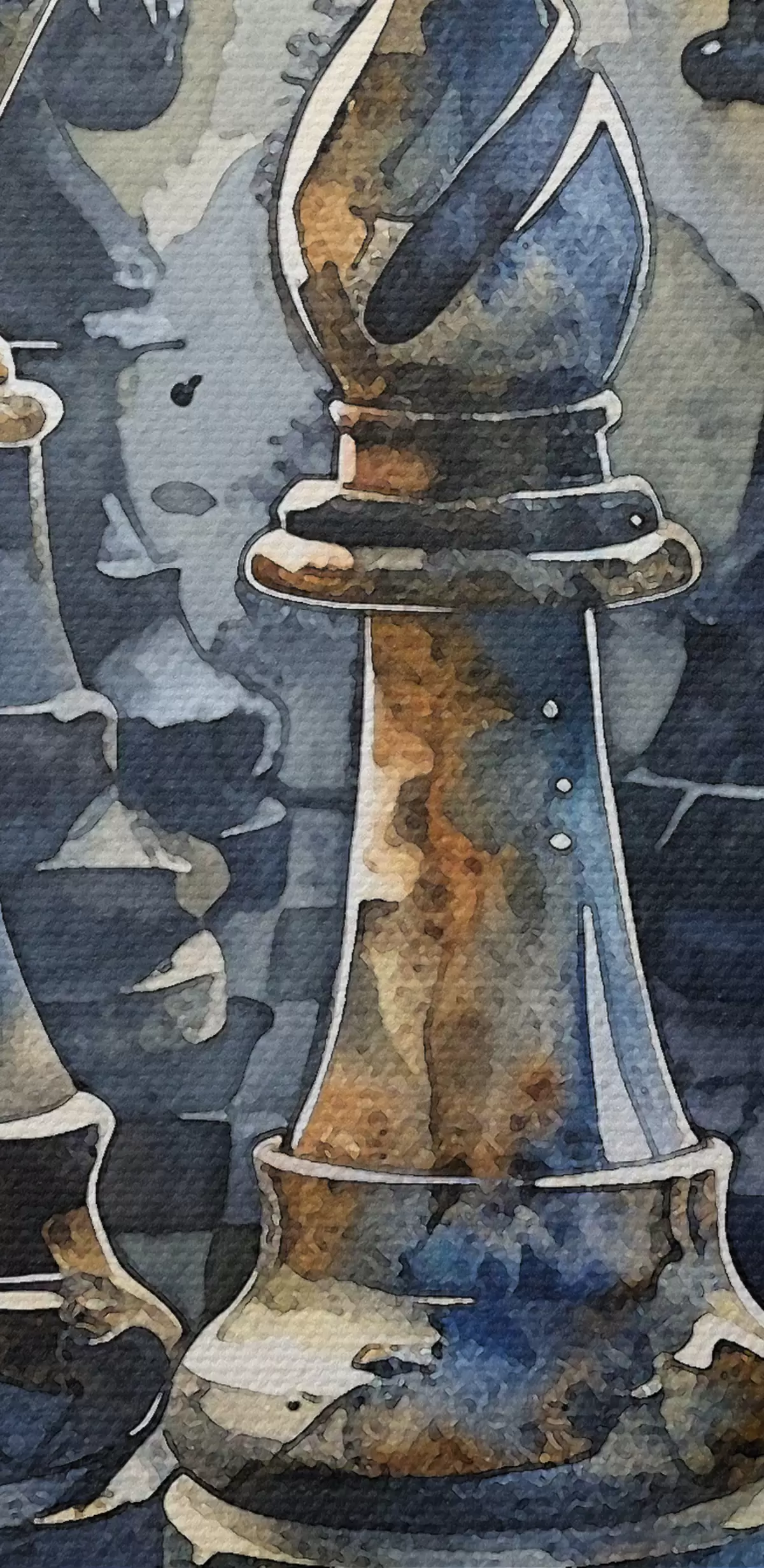 Obraz Detailní pohled na akvarel na šachy vyrobené z kovu nebo kamene s detailními vzory a texturami Č. s38960