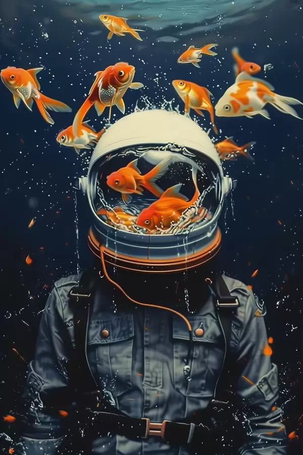 Obraz Astronaut plave s hravými rybami Č. s39041