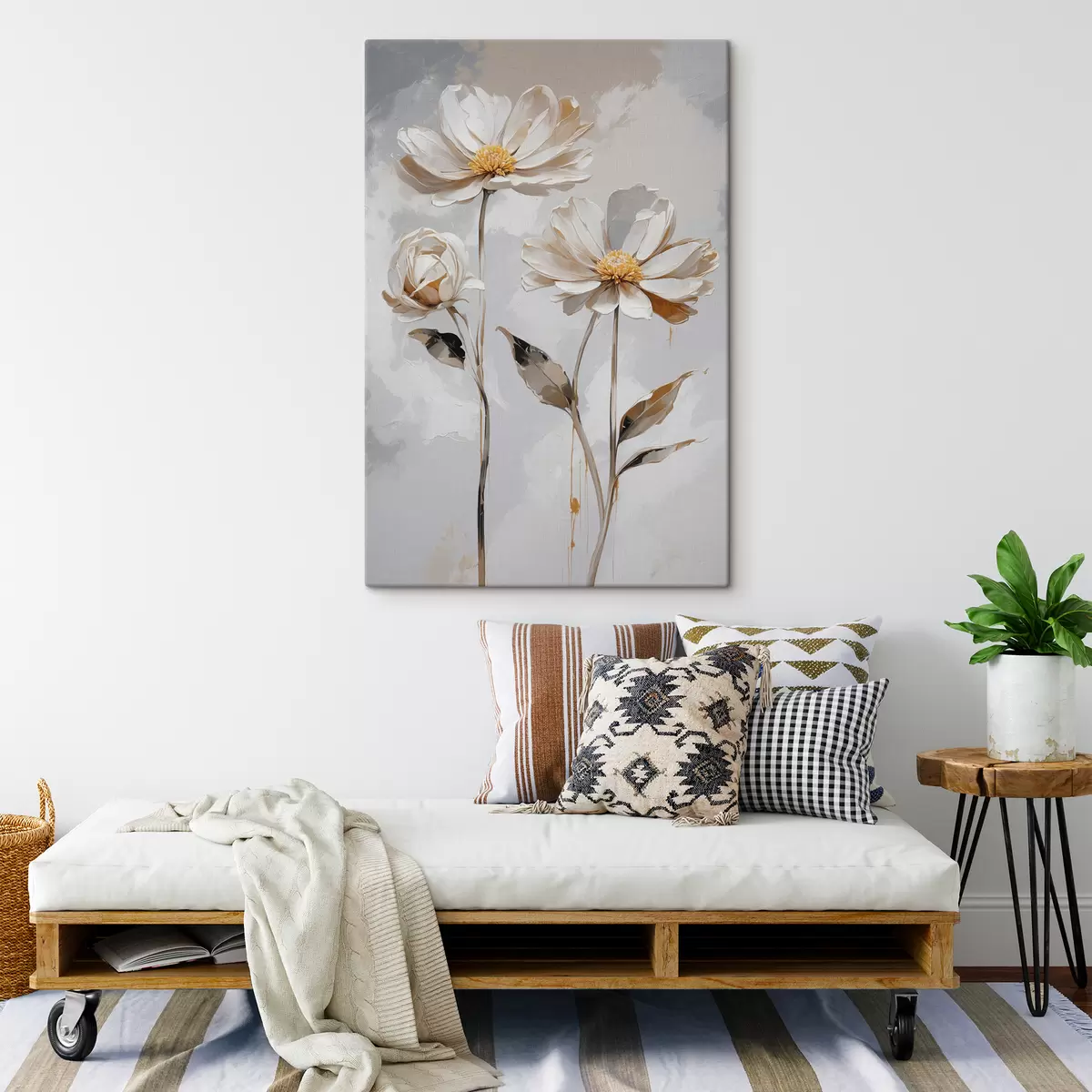 Obraz Bílé květy na bílo-šedém pozadí Č. s39174