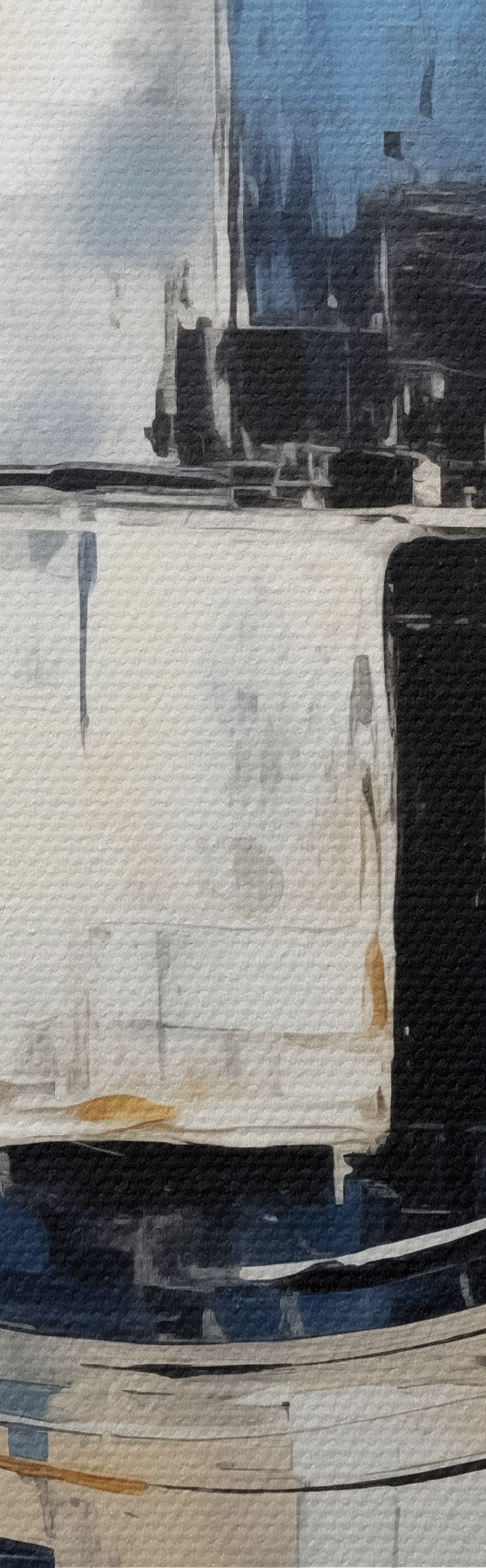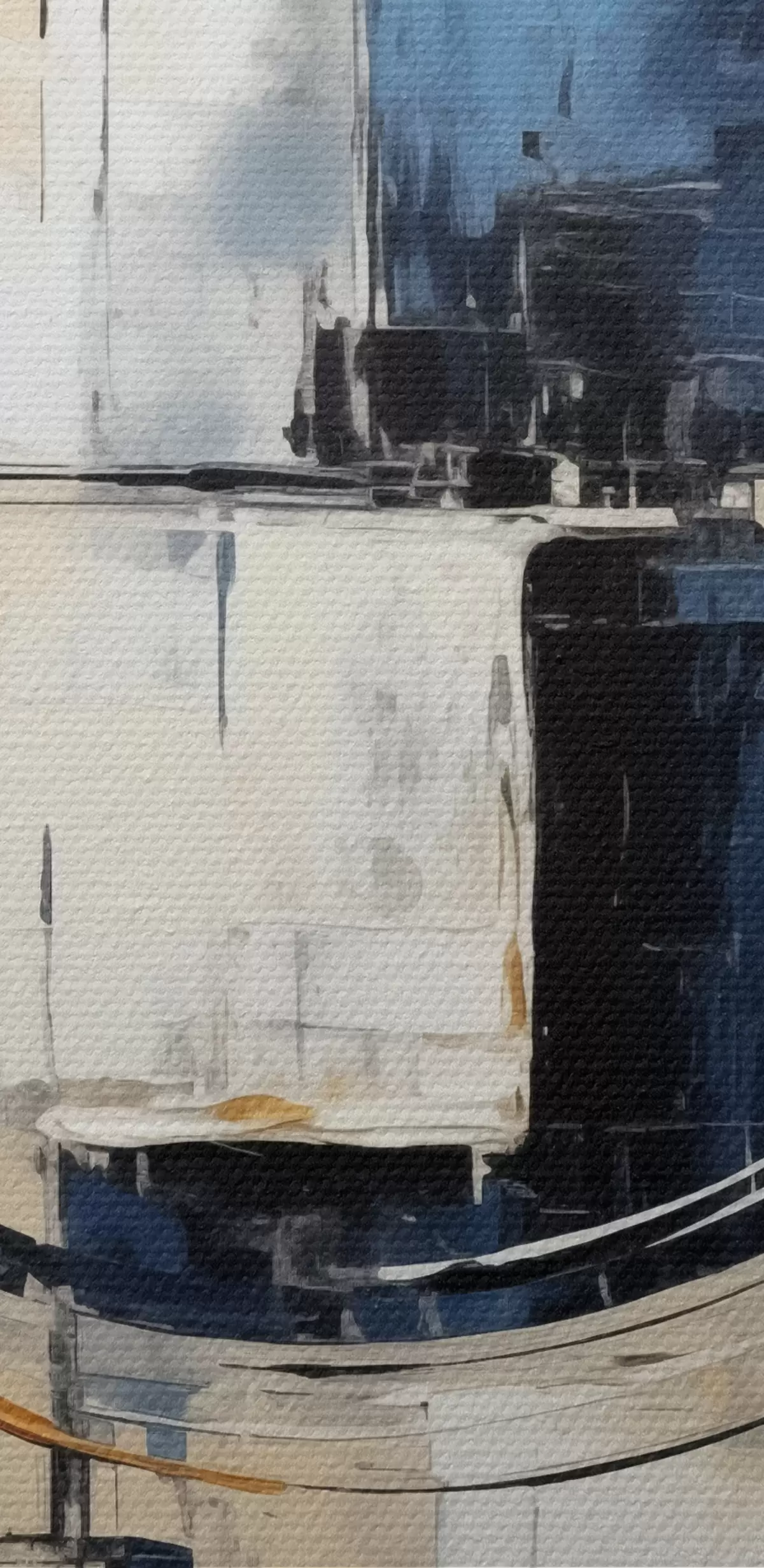 Obraz Abstraktní kubismus, modré, oranžové, bílé tahy, kruhová postava Č. s39179
