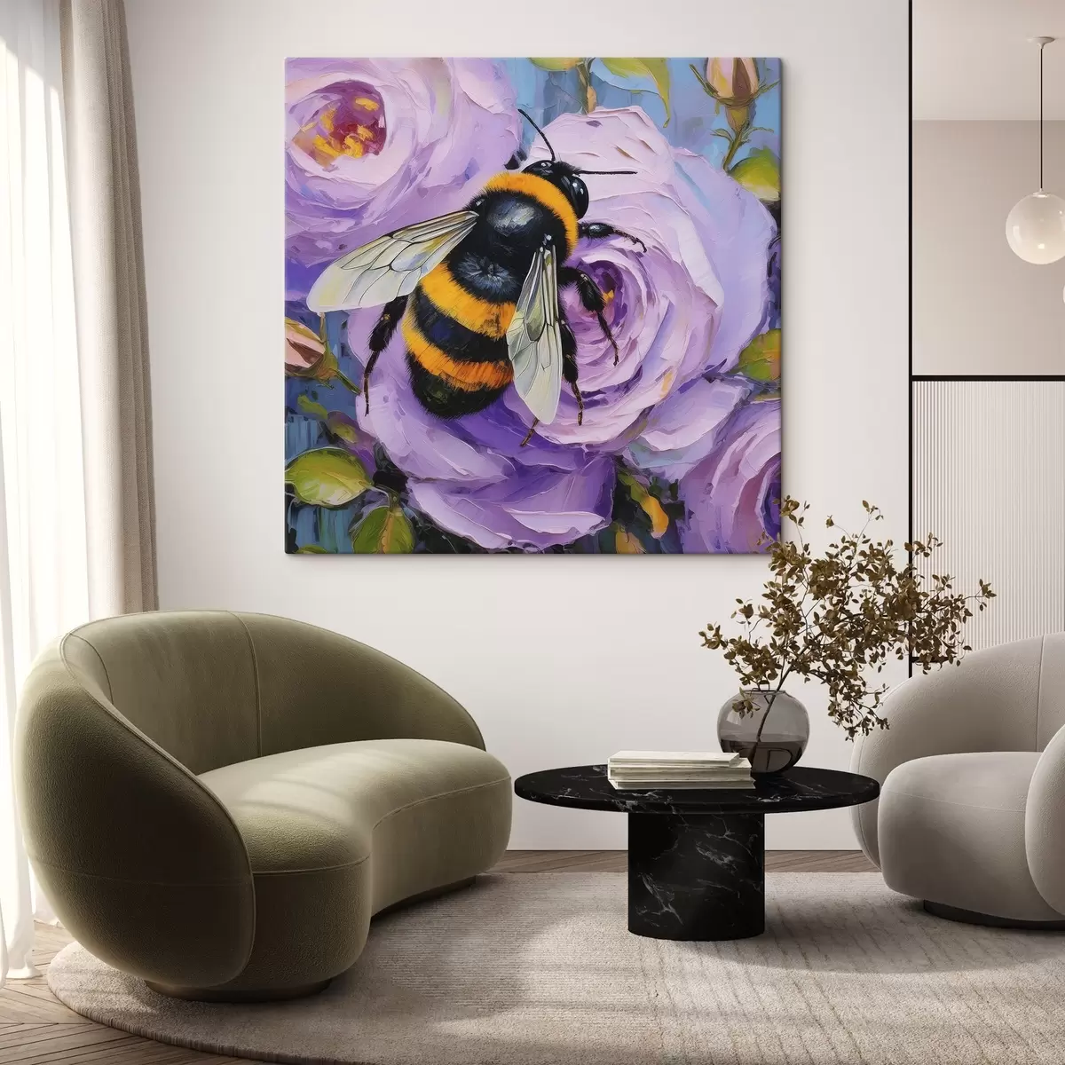 Obraz Včela na růžové pivoňky, letní květiny, olejomalba, živé tahy štětcem Č. s39410