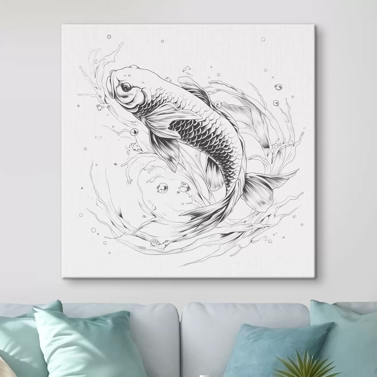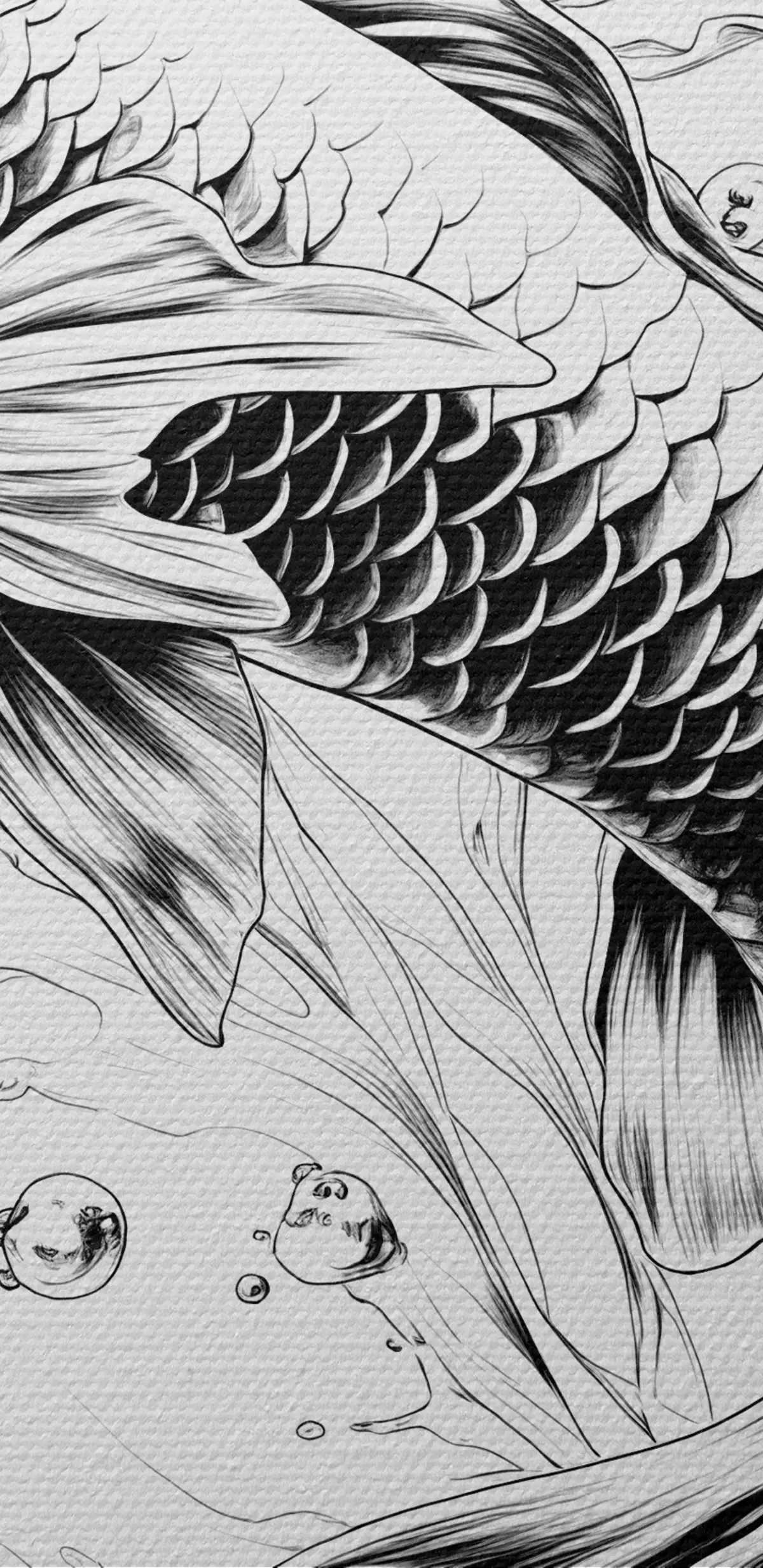 Obraz Koi ryby monochromatický perokresba Č. s39433