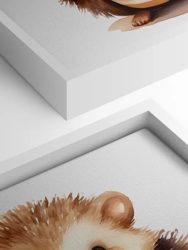 Obraz Ježek držící bílý pohár v tlapkách akvarel dětské ilustrace Č. s39440