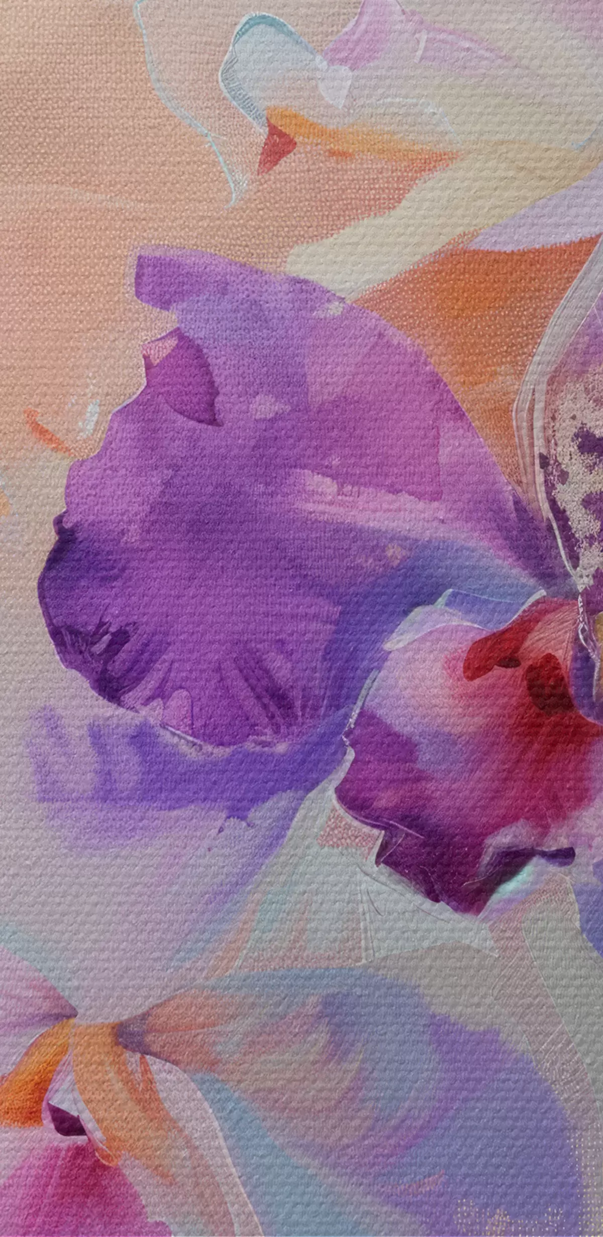 Obraz Impresionistická malba orchideje, světlé pastelové barvy, poloabstraktní botanický tisk, s neutrálním pozadím Č. s39463