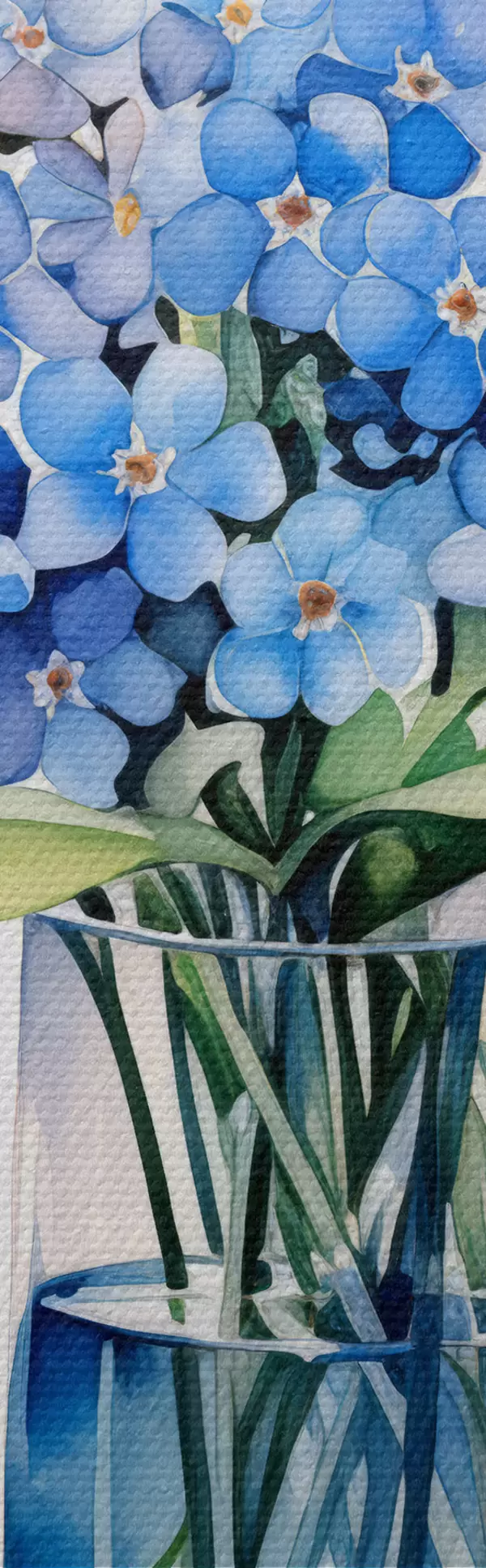 Obraz Kytice modrých lučních květin v průhledné váze akvarelem Č. s39564