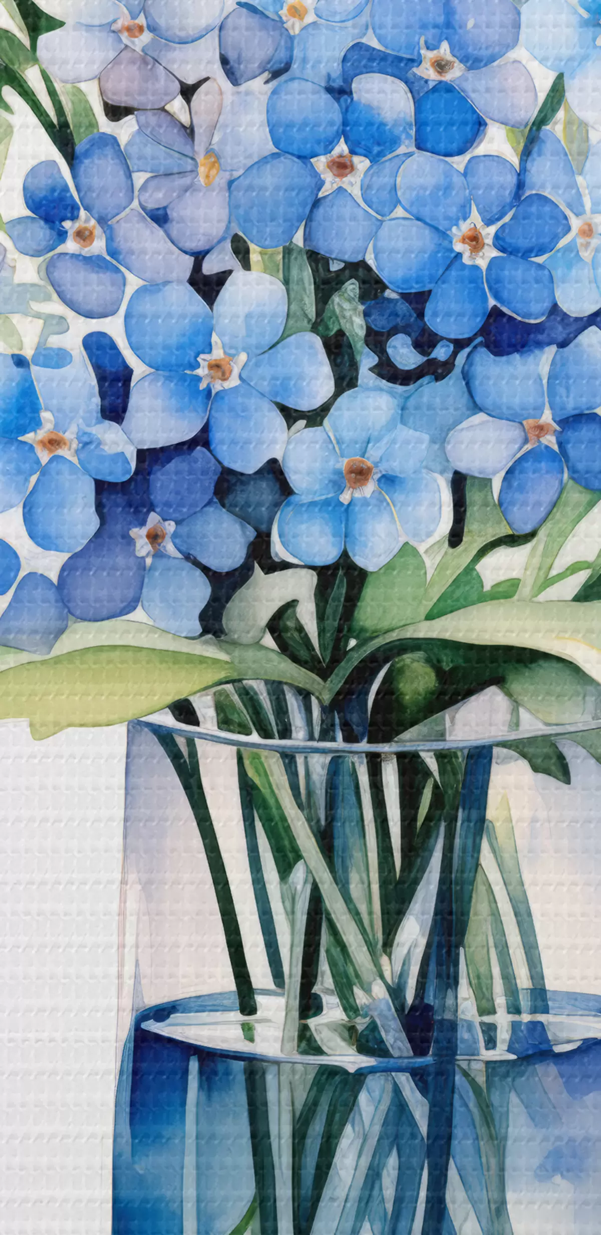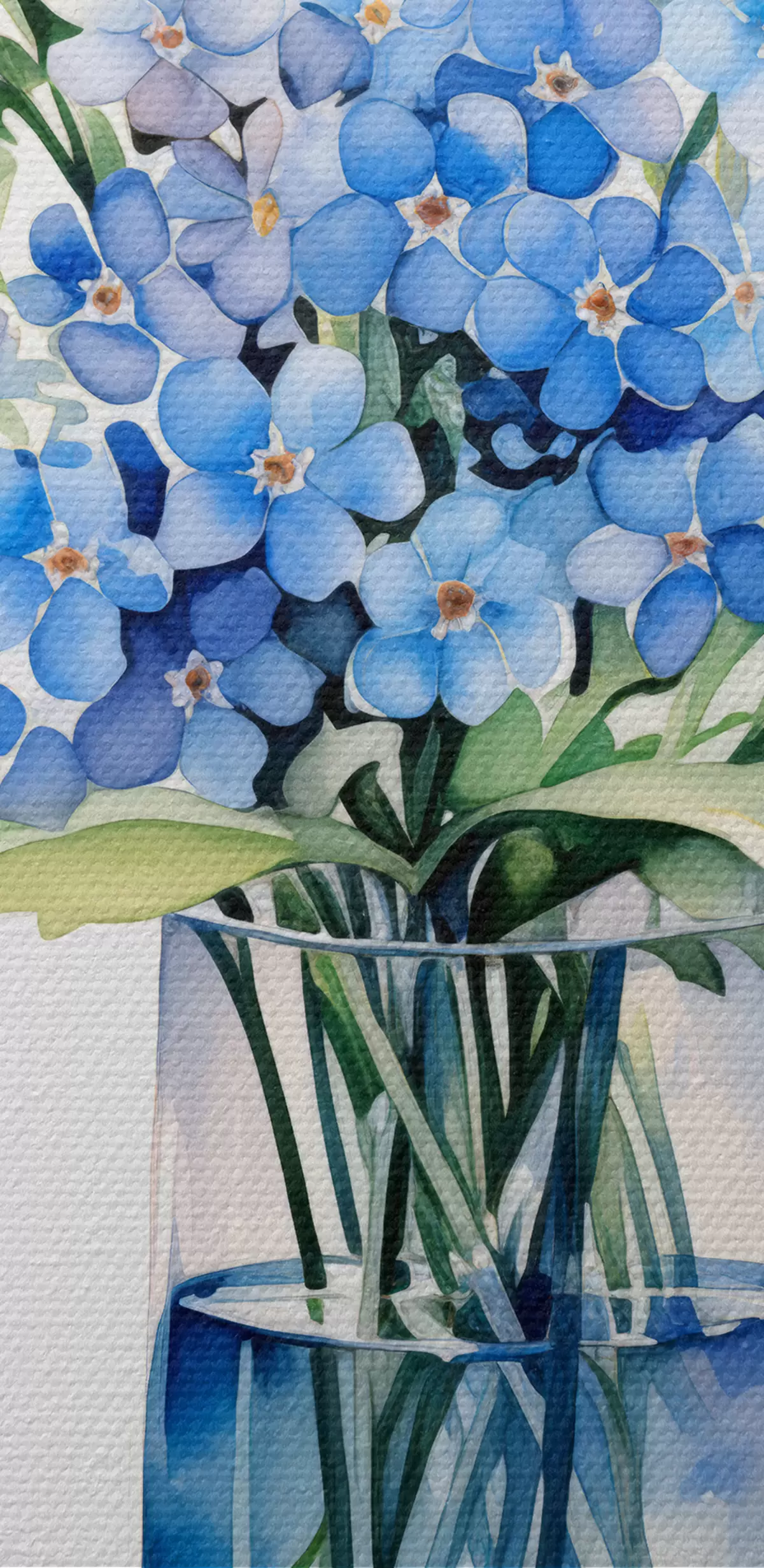 Obraz Kytice modrých lučních květin v průhledné váze akvarelem Č. s39564
