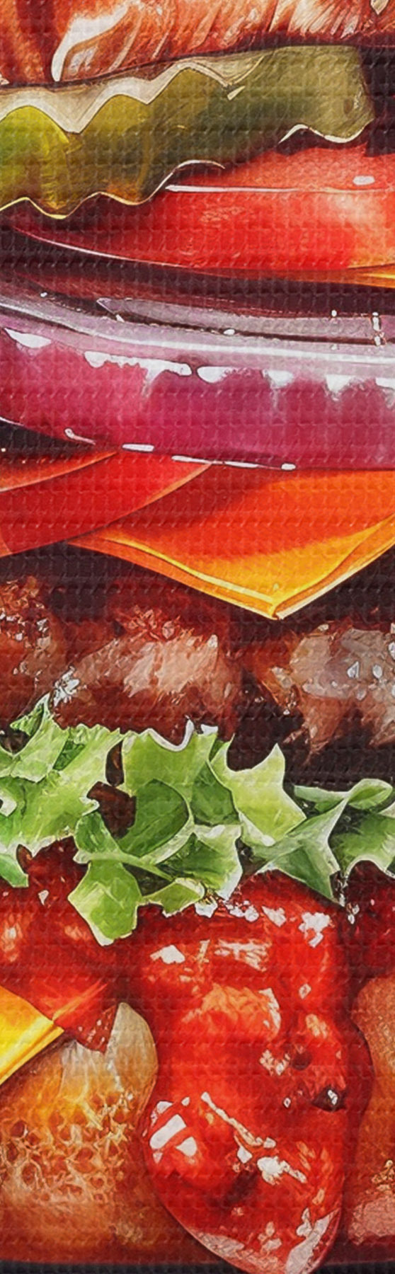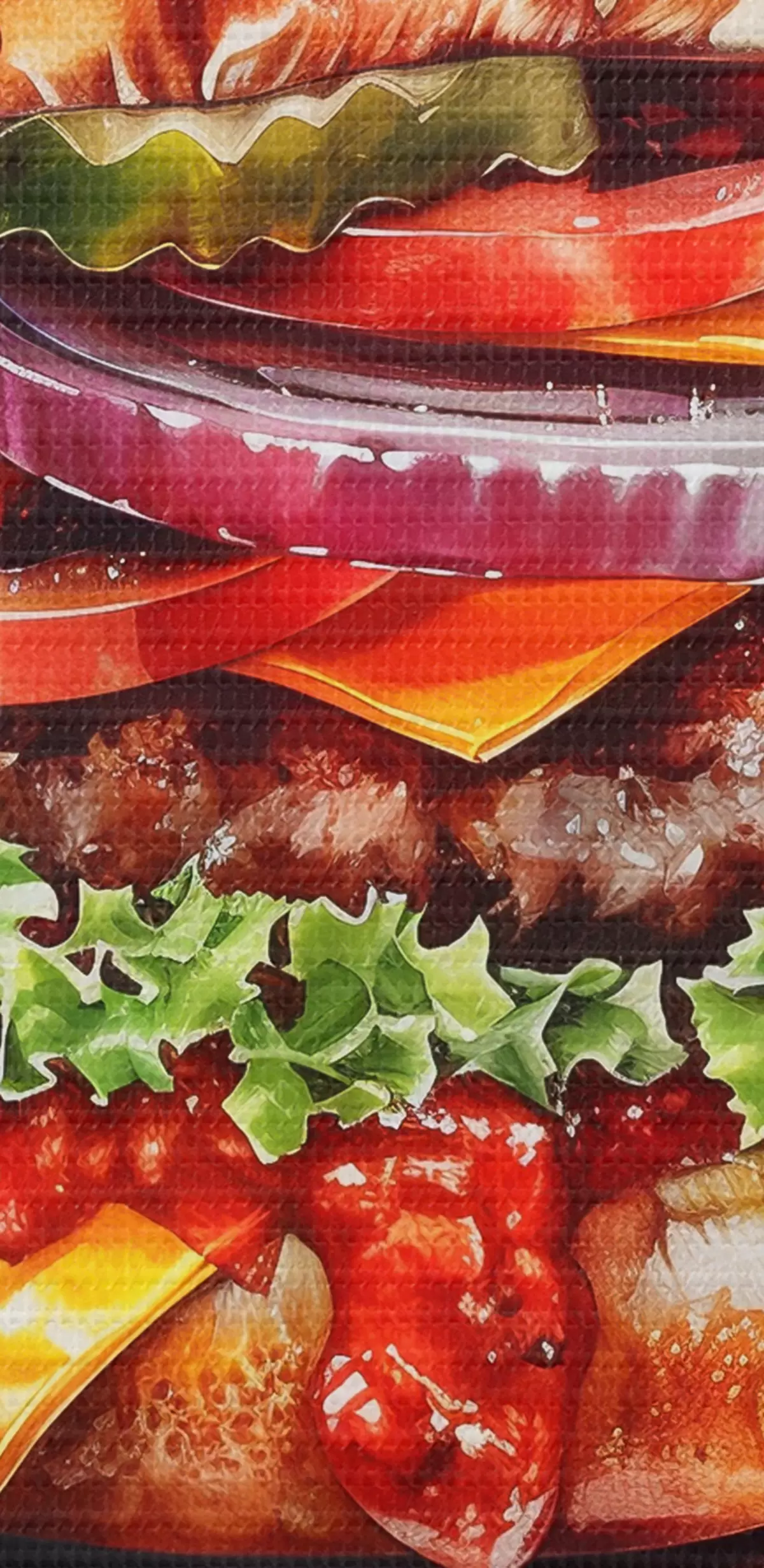 Obraz Chutný burger s masem, květinové, akvarel, jídlo umění Č. s39699