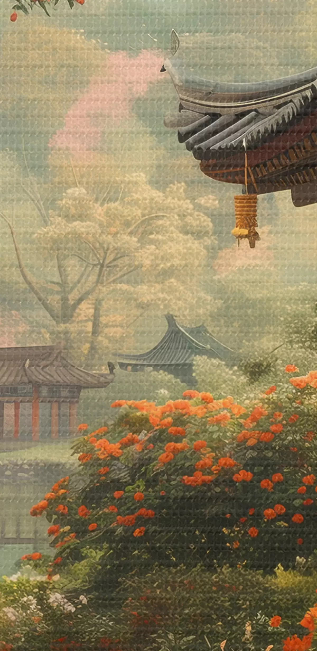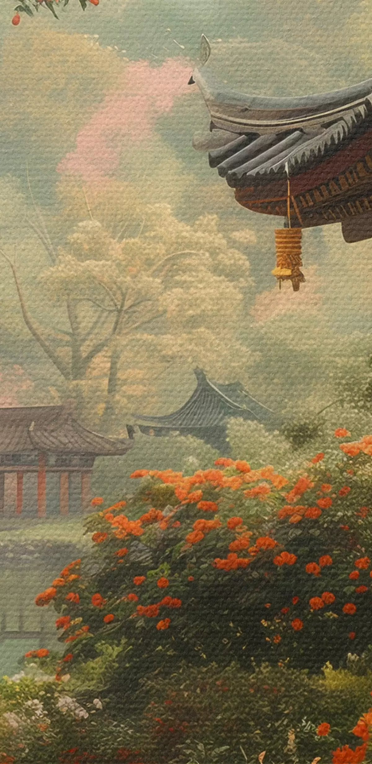 Obraz Japonský park s kvetoucími stromy a květinami, les, zahradní domek, jezero Č. s39772