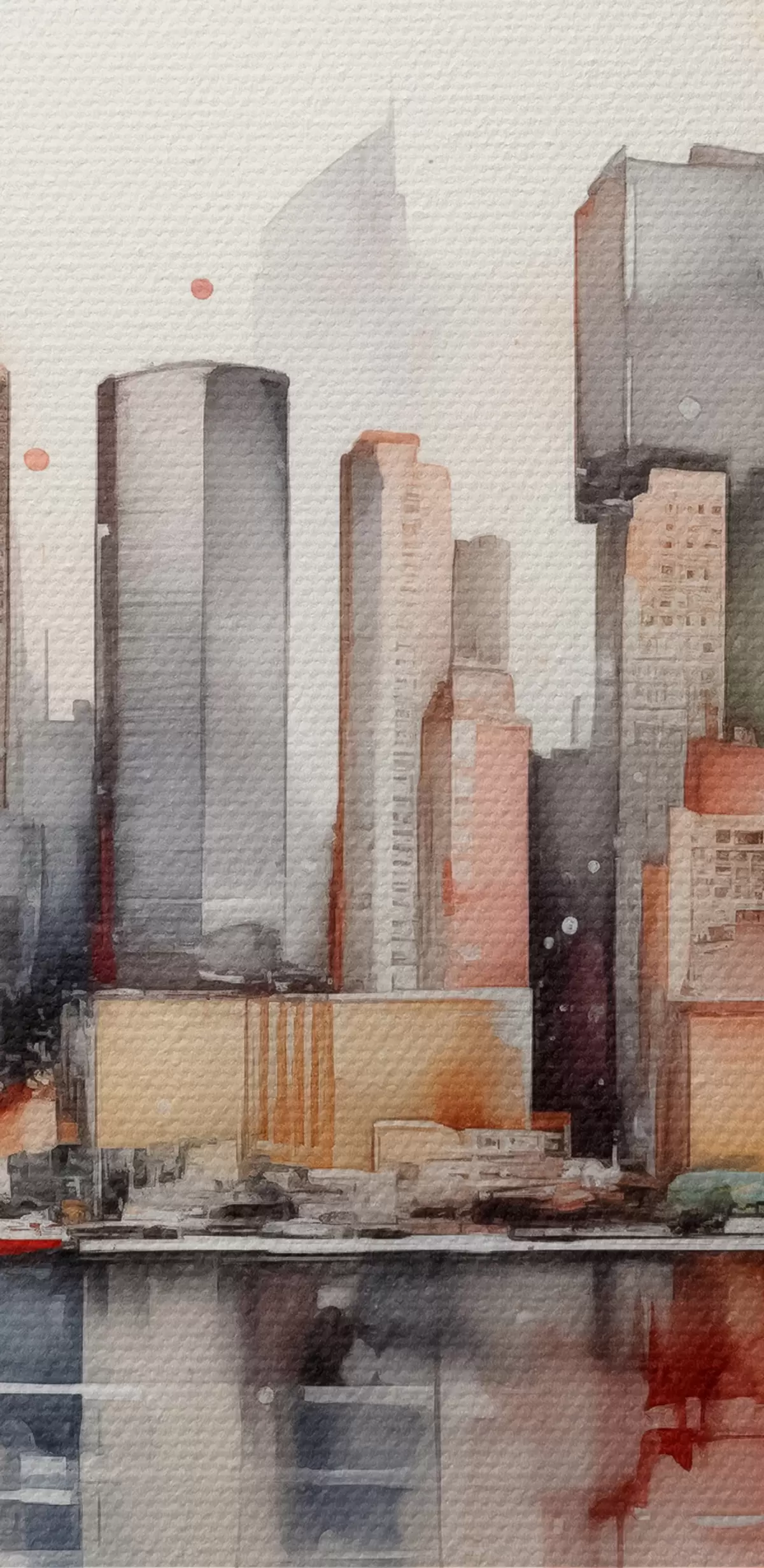 Obraz Pohled na New York City, siluety budov, akvarel Č. s39828