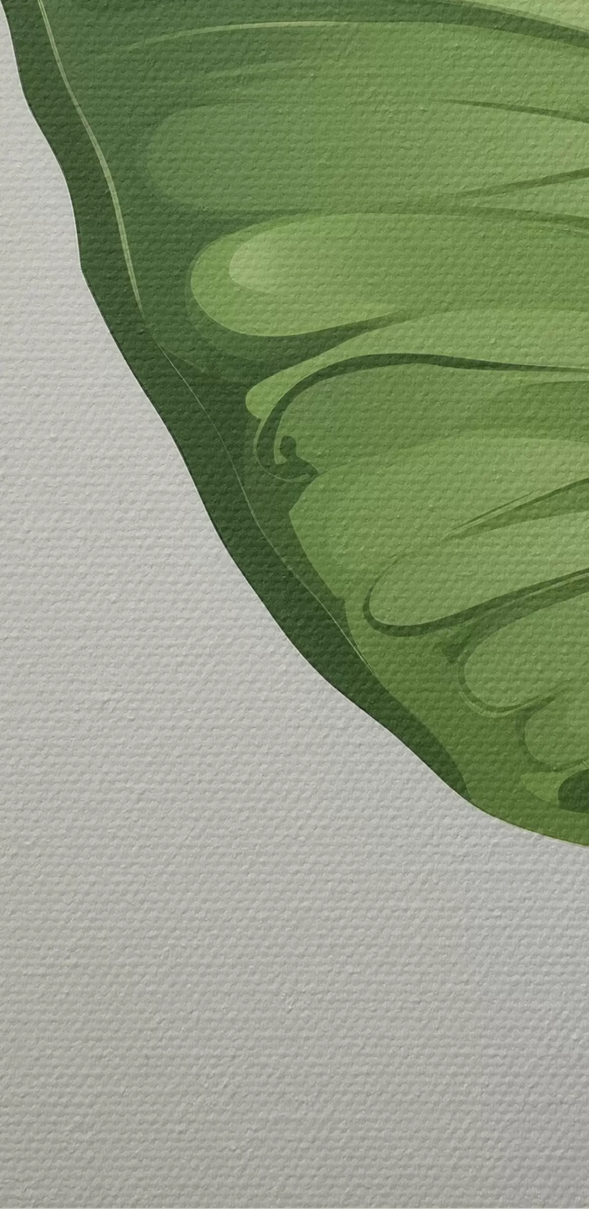 Obraz Levé křídlo zeleného motýla na bílém pozadí Č. s40062