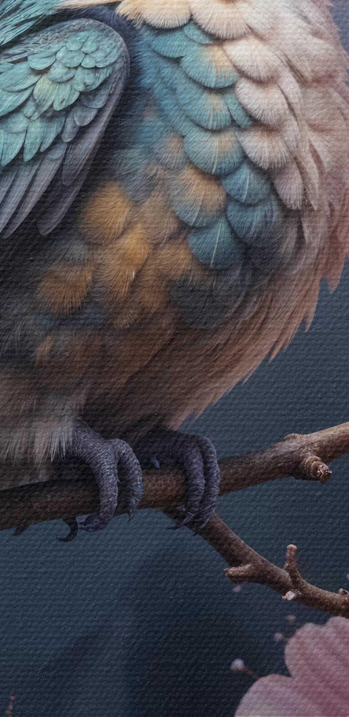 Obraz Barevný kolibřík posazený na větvi se zářivými růžovými květy v pozadí Č. s40155