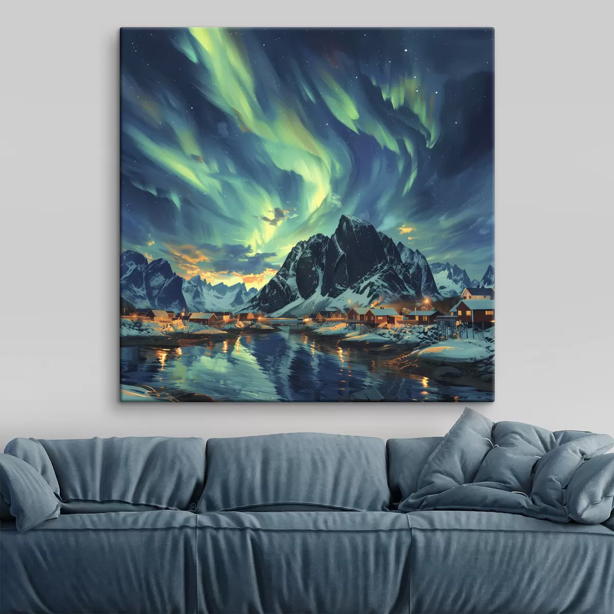 Obraz Lofotské ostrovy, zimní vesnice, severní světla Č. s40299