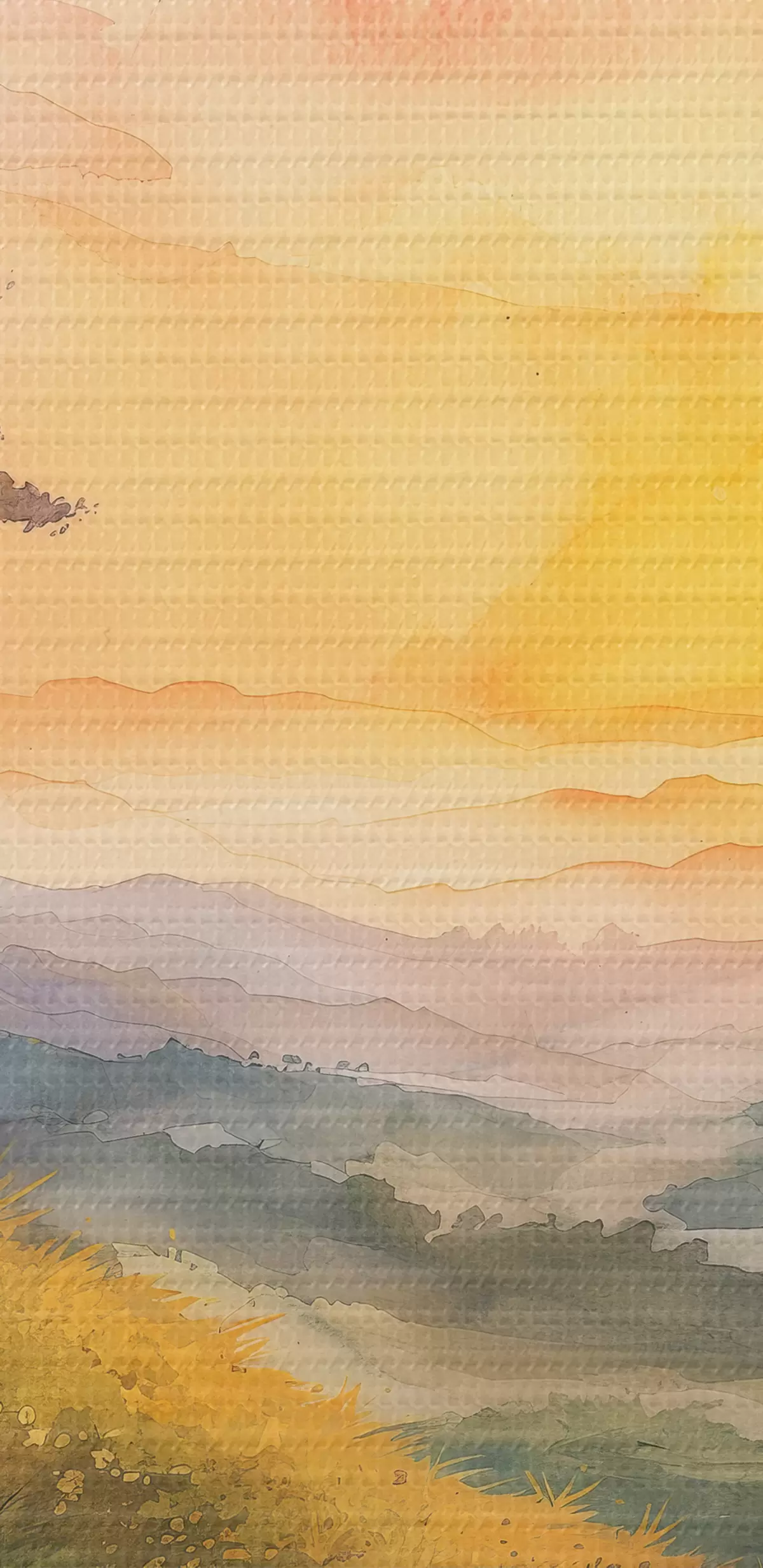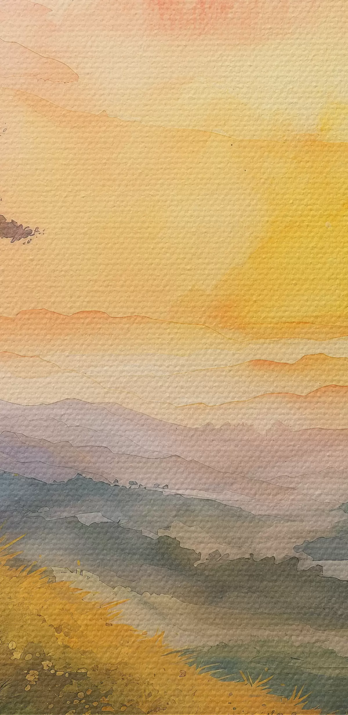 Obraz Louka s kopci a stromy, květiny, akvarel Č. s40303