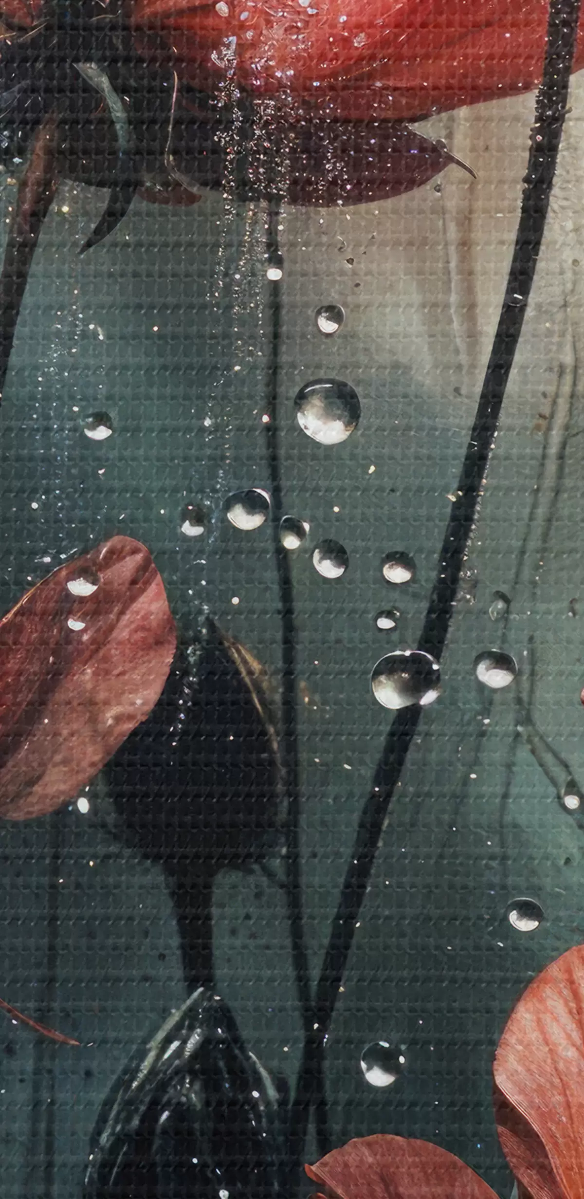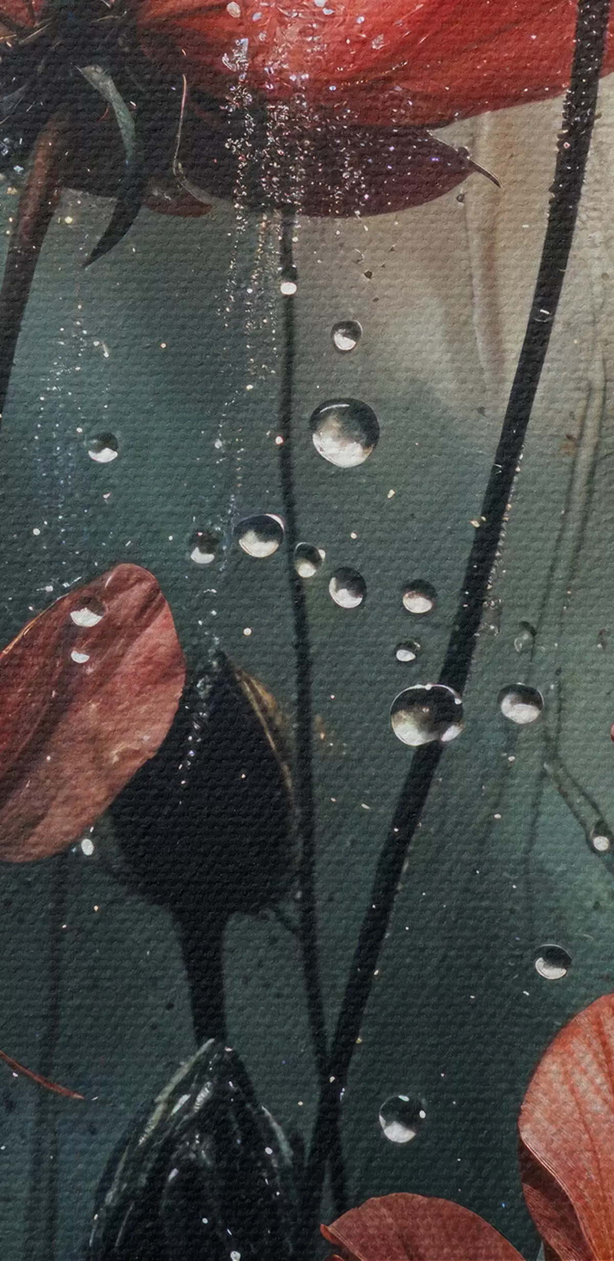 Obraz Červené květy s kapkami vody na rozmazaném pozadí Č. s40412